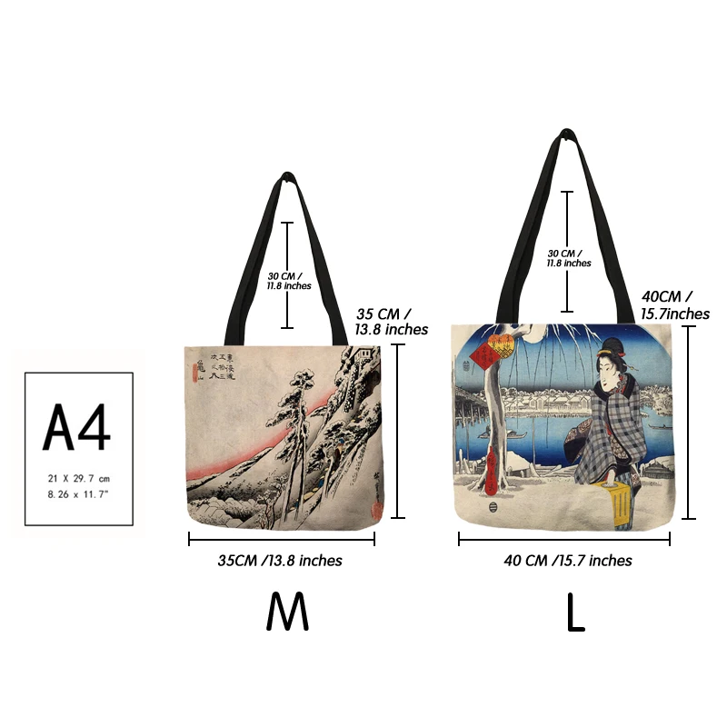 Японская Сумка-тоут Ukiyoe с волнистым креплением, модная повседневная дамская сумочка на плечо для путешествий, Большой Многоразовый шоппер