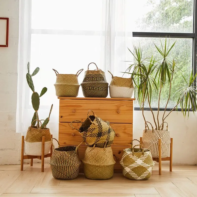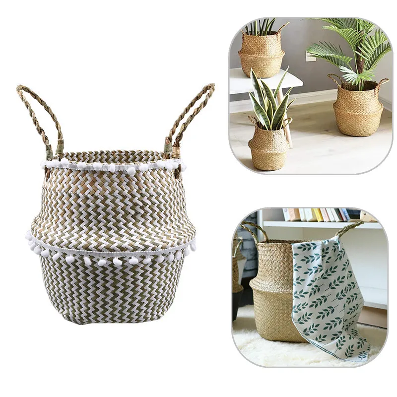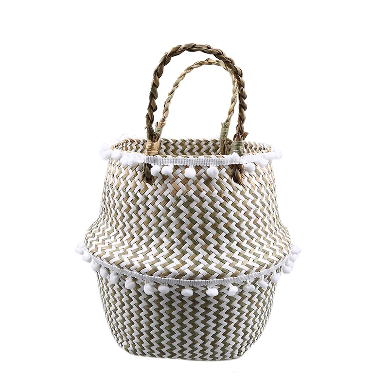 Плетеная корзина для живота из морских водорослей с бусинами для хранения растений, контейнер для белья, пикника, продуктов, органайзер, корзина, домашний декор