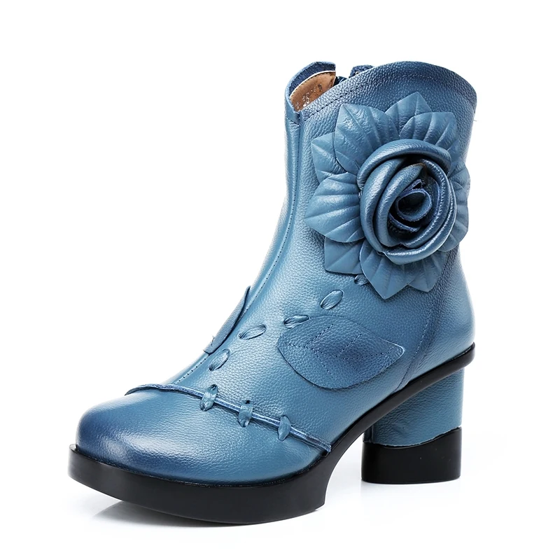 Женские ботинки из натуральной кожи, модные весенние ботинки ручной работы в стиле ретро, ботильоны на высоком каблуке, женская обувь из воловьей кожи с цветочным принтом, женская обувь, 2022