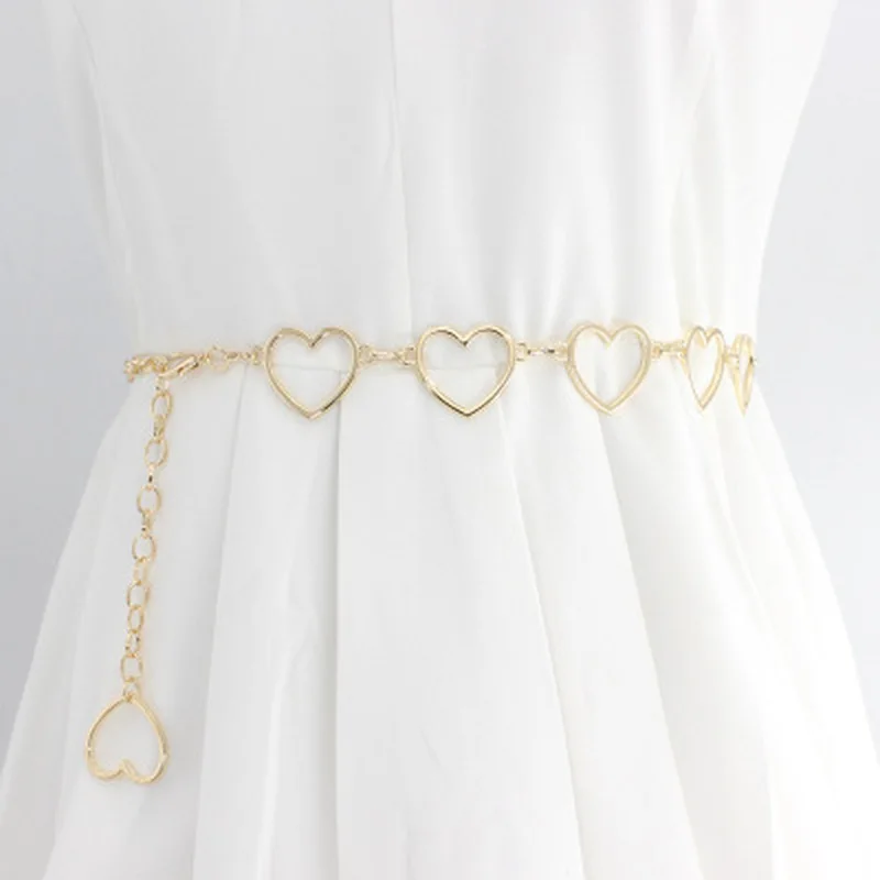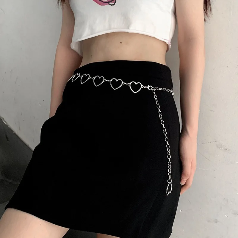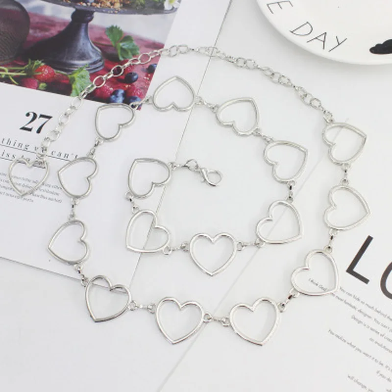 Женский пояс в стиле хип-хоп, Классический ажурный пояс с цепочкой и сердечками, 105 см, 2021