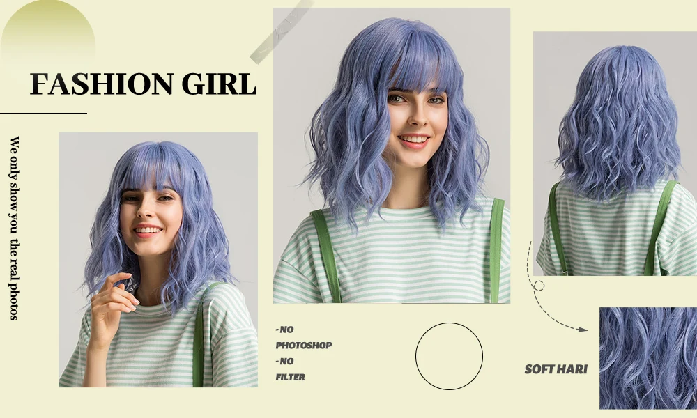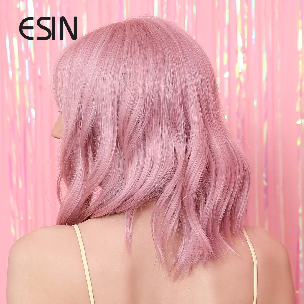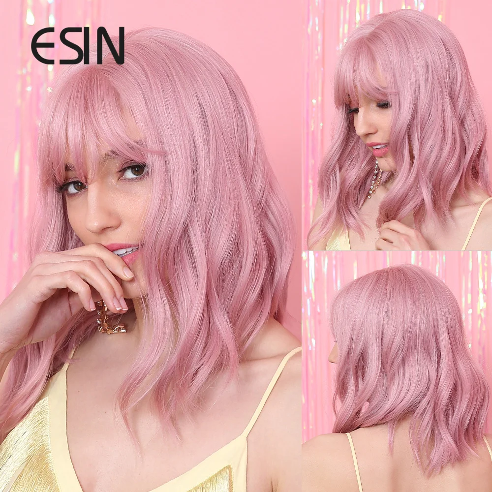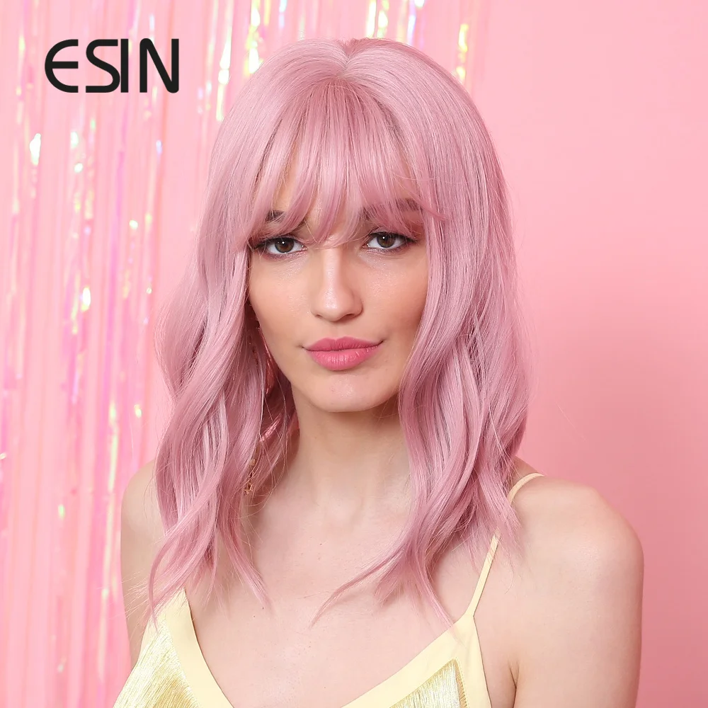 ESIN розовые синтетические волосы средней длины свободные волнистые волосы с челкой для женщин Косплей ежедневный натуральный термостойкий