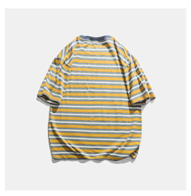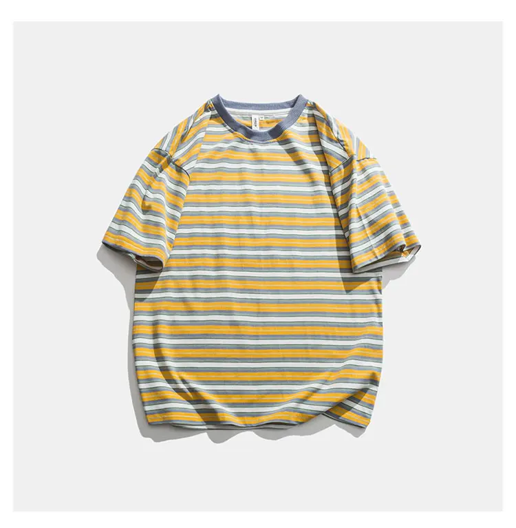 Футболка мужская в полоску, из хлопка, ярко-желтого цвета, 2021, LA...