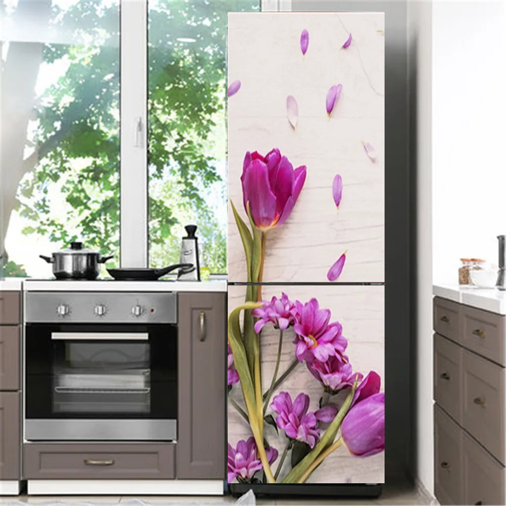 Наклейка на дверь холодильника в современном стиле, самоклеящаяся наклейка на стену, цветочный стикер на холодильник, обои для домашнего декора