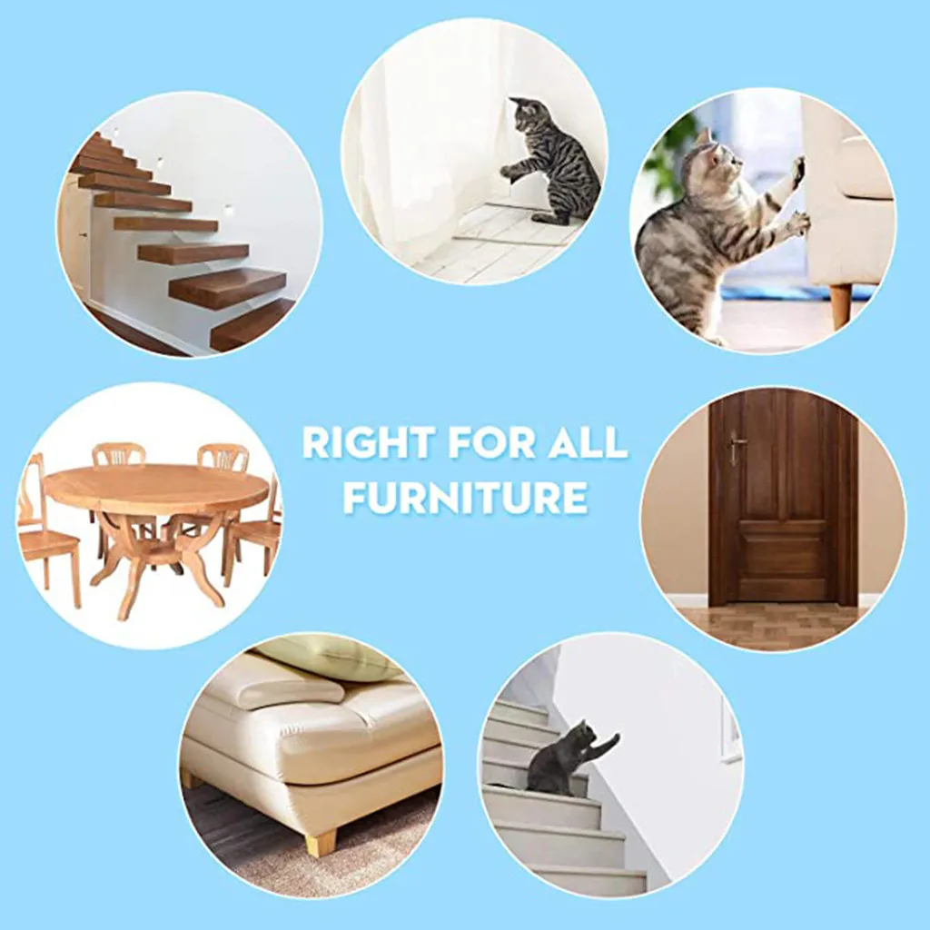 1. Защита Вашей мебели: по-прежнему назойливая от царапин ваших кошек вашей мебели? С помощью нашей защитной ленты для кошек вам больше не придется беспокоиться об этом. Наша Когтеточка для кошек с двусторонней клейкой лентой может решить эту проблему. Защита для кошек на диване защищает вашу мебель, диван, кровать, прилавок, дверной проем и многое другое. Кошки любят липкие вещи, которые помогут вашей кошке развить хорошие привычки и могут защитить вашу мебель и диван.