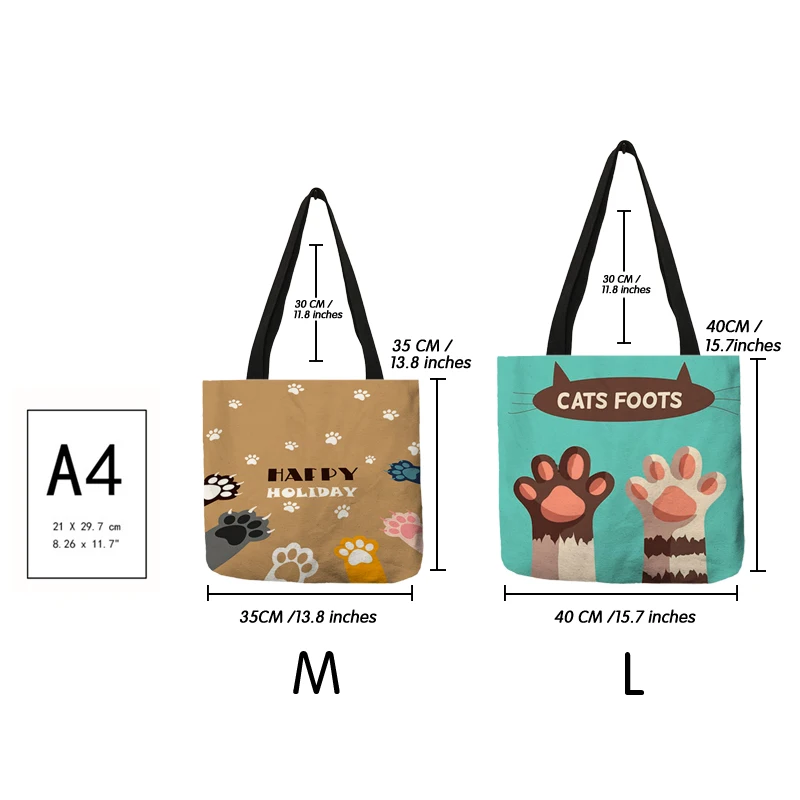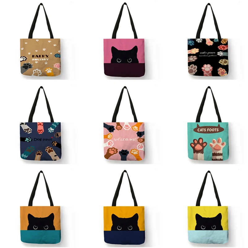 Милая женская сумка на плечо с принтом в виде черной кошки и лапы котенка из мультфильма, женская модная сумка, многоразовые хозяйственные сумки для продуктов