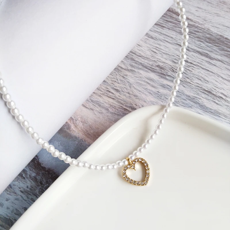 Ожерелье женское с кулоном в виде сердца, с искусственным жемчугом