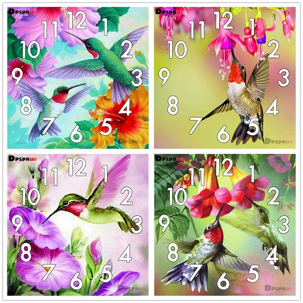 Алмазная живопись Dpsprue, вышивка крестиком с часовым механизмом, мозаика 5D "сделай сам", квадратная, круглая, цветок, птица, 3d вышивка, подарок HG213