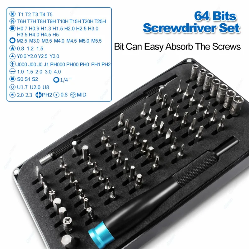 Набор инструментов для ремонта компьютера, комплект прецизионных отверток для ноутбука с 64 насадками, подходит для Macbook, Xbox, PS4