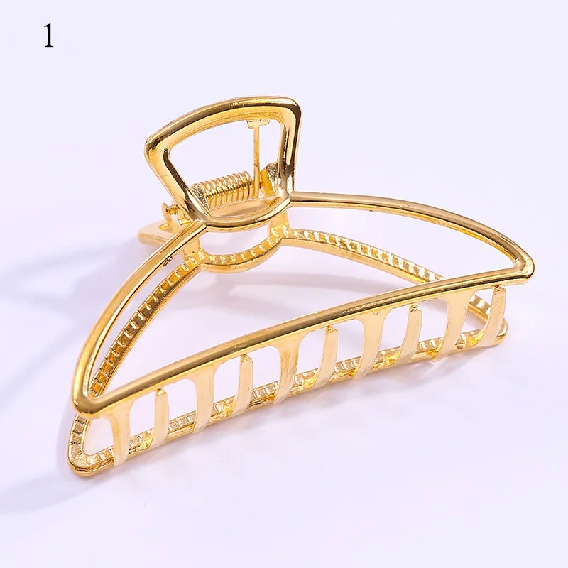 Заколка-краб для волос, металлическая, однотонная, большого размера