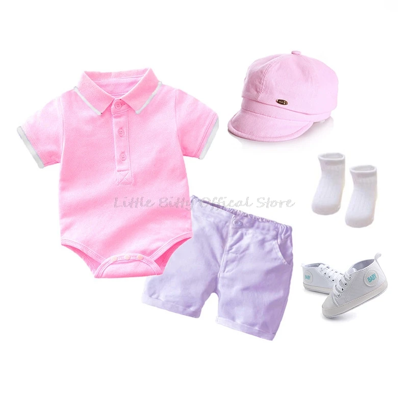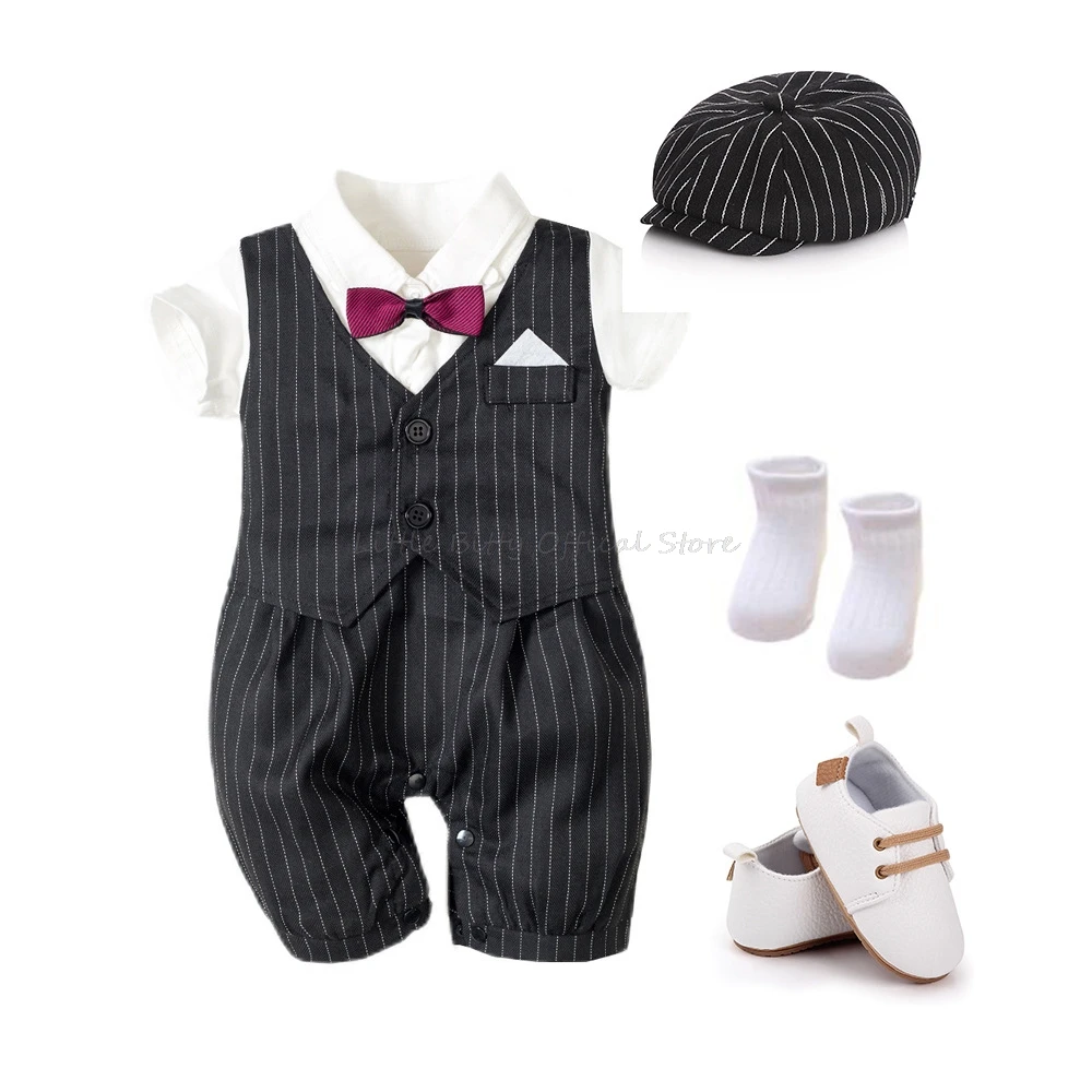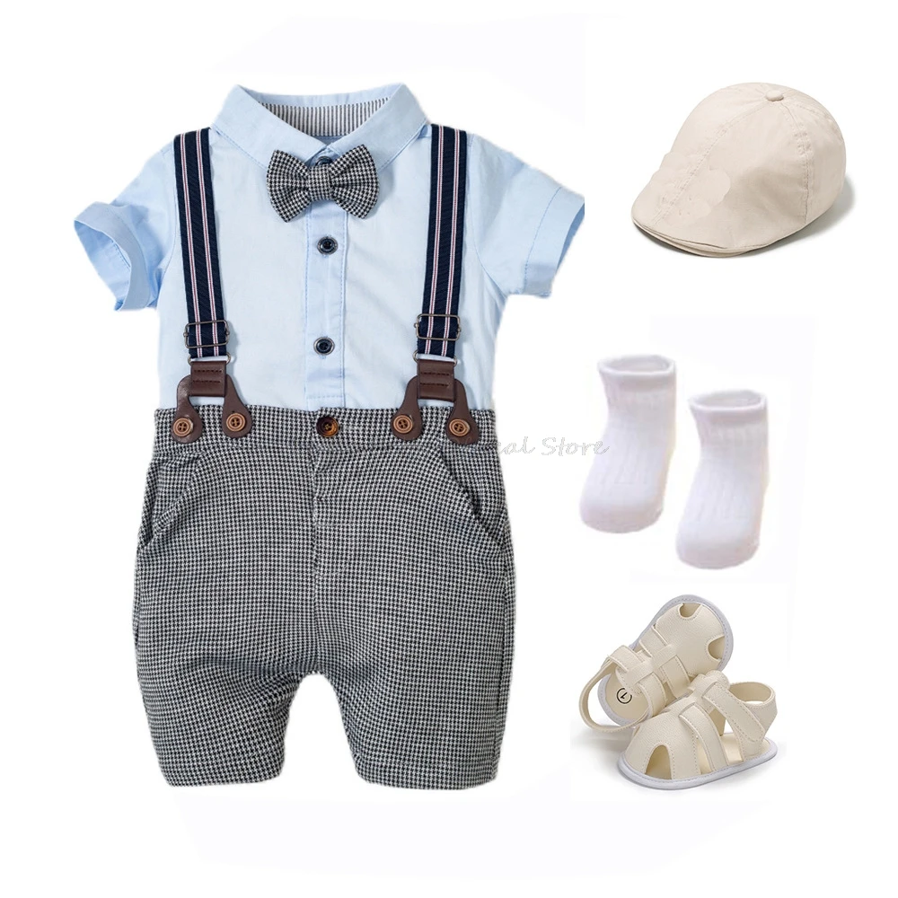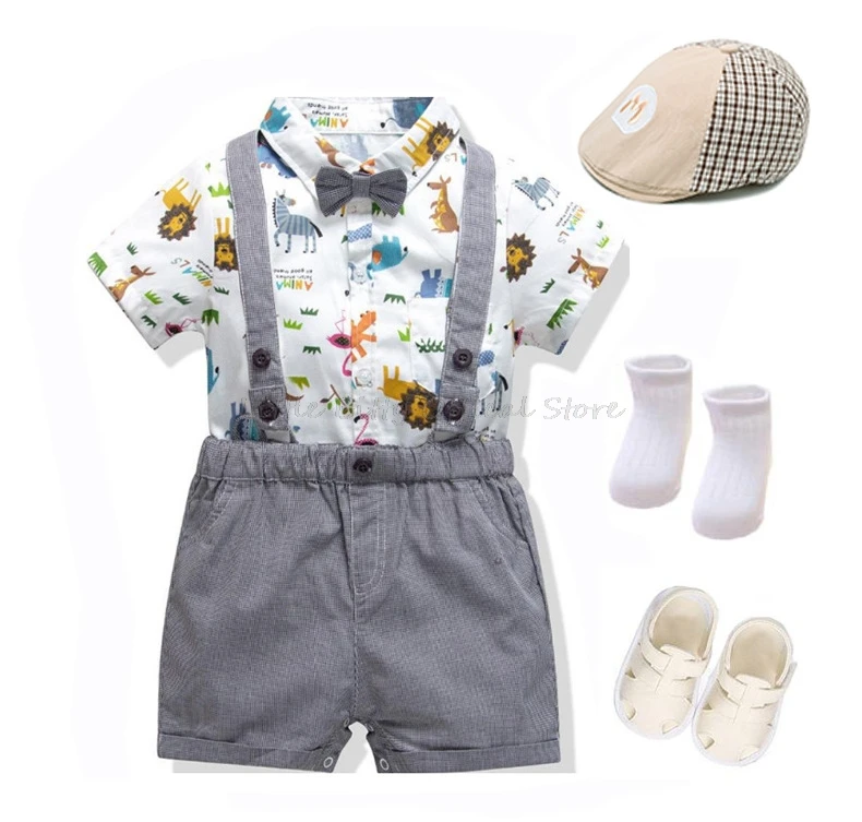 Детский комбинезон + шорты + Кепка + носки + обувь + галстук-бабочка, комплект одежды из 6 предметов, Костюм Джентльмена для новорожденных, летняя одежда для маленьких мальчиков