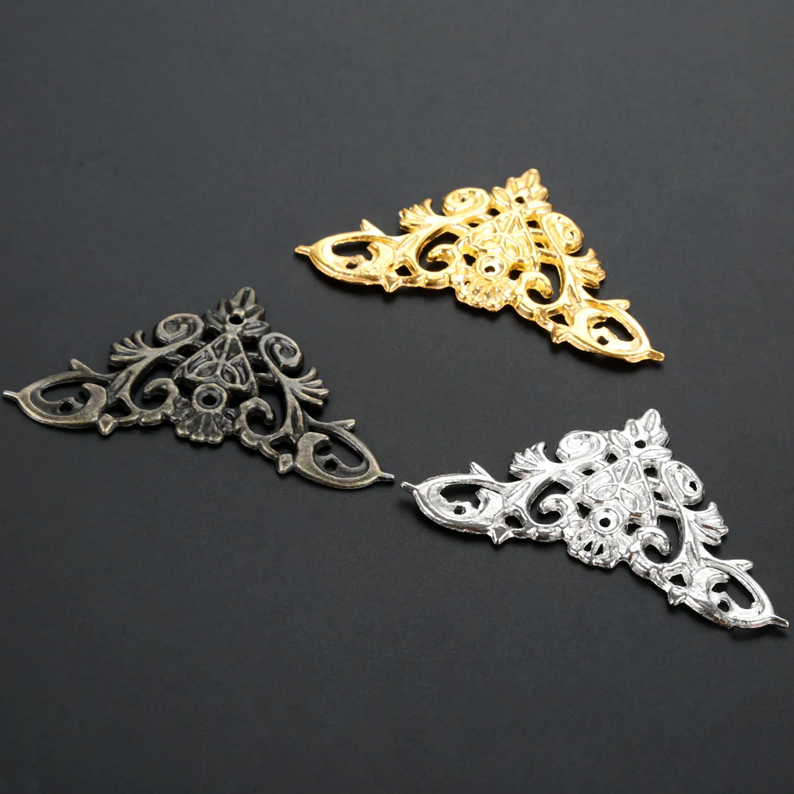 4 шт. кружевное Угловые протекторы античная бронзазолотоSilber деревянные, для ног чехол ножка стола Декор гвардии Ретро кронштейн wГвозди 3546 мм
