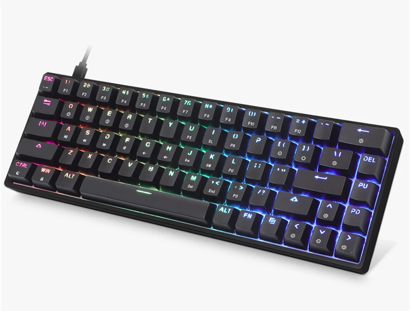 100% новый товар высокого качества. 68 механических клавиш с покерным стандартным выравниванием. Более 100 миллионов нажатий клавиш, в 2 раза дольше, чем традиционные механические оси. Нижняя часть корпуса из АБС-пластика, двухцветная крышка ключа из АБС/ПБТ, Классическая и модная. Водонепроницаемый (класс водонепроницаемости IP68)/пыленепроницаемый/антикоррозийный. 3-слойный программируемый режим загрузки (версия RGB). Замечательная сияющая подсветка, 16 миллионов цветовых RGB световых эффектов для удовлетворения потребностей геймеров. Настройте подсветку клавиатуры через программное обеспечение. Эргономичный дизайн игровой клавиатуры обеспечивает максимально комфортные ощущения от игр.