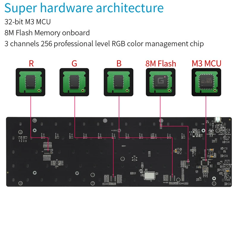 GK68: колпачки клавиш ABS/проводное подключение (USB Type C) GK68S: колпачки из АБС-пластика/проводное соединение (USB Type C) и беспроводное соединение bluetooth (FN + пробел может переключаться между проводным режимом и режимом Bluetooth, литиевая батарея 1900 мАч.)