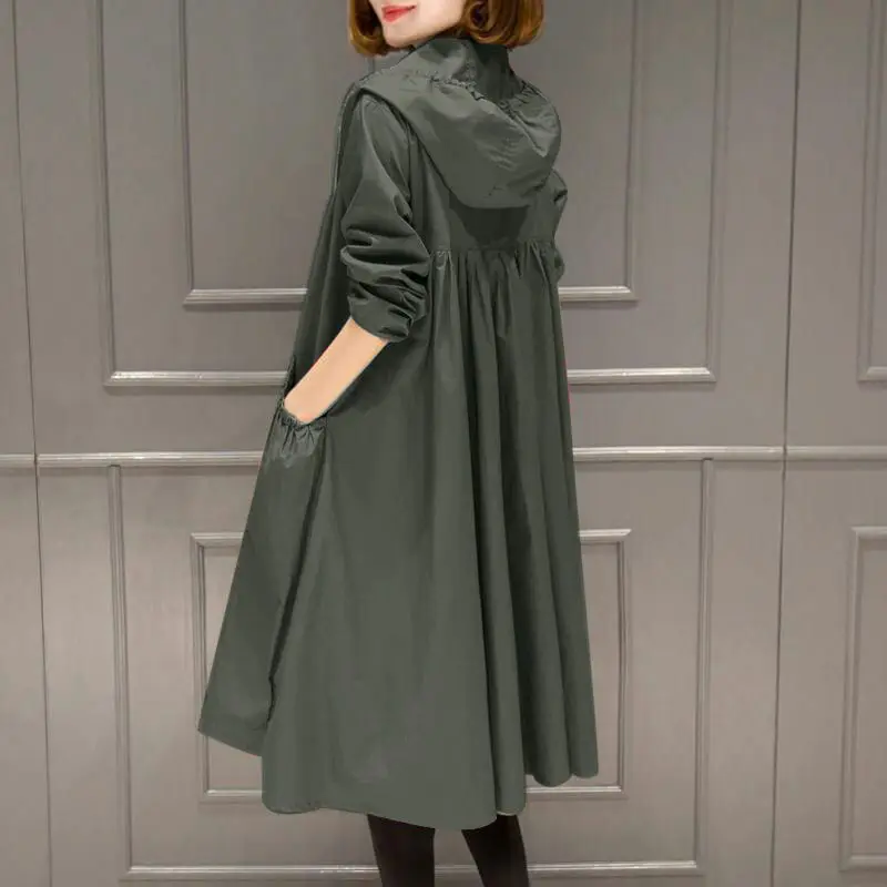 Тренч Женский однотонный с капюшоном, Легкий Повседневный длинный п...