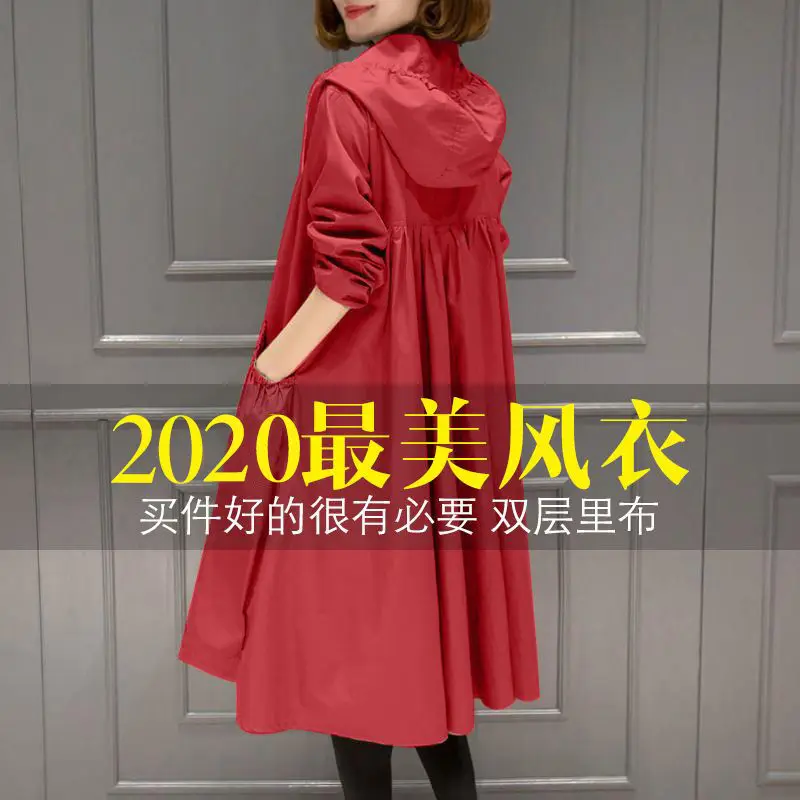 Ветровка женская с капюшоном, тонкий длинный тренчкот свободного по...