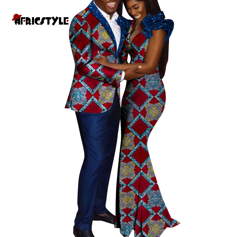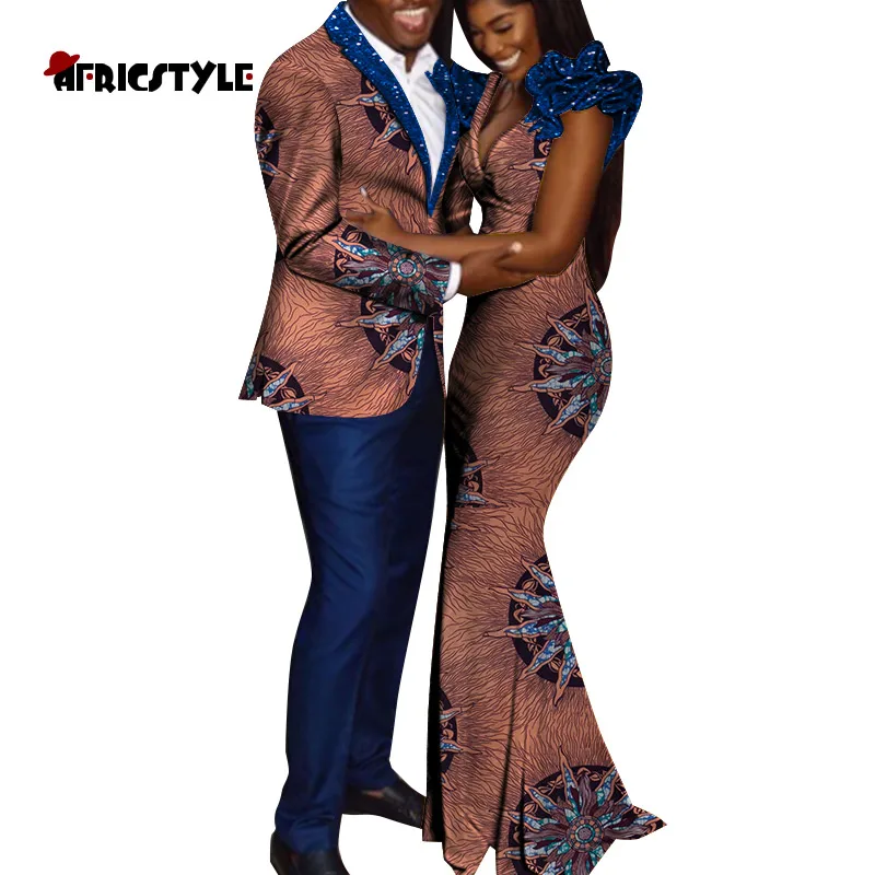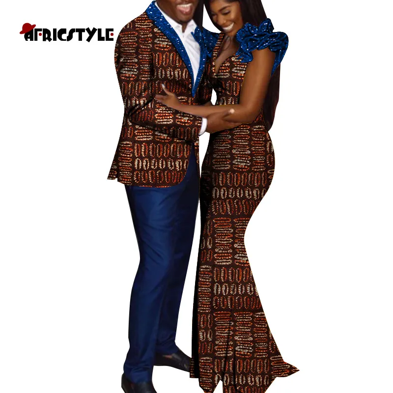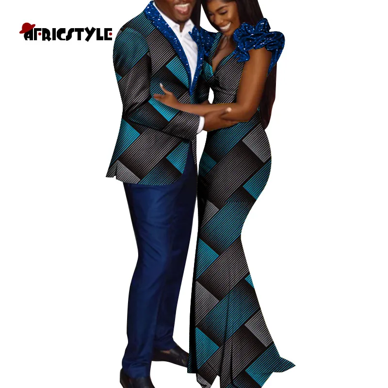 Новинка 2021, африканская одежда для пар Дашики для влюбленных, базин богатый ментопс и брюки + женское платье, африканские парные комплекты WYQ727