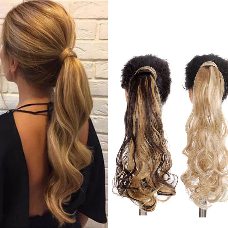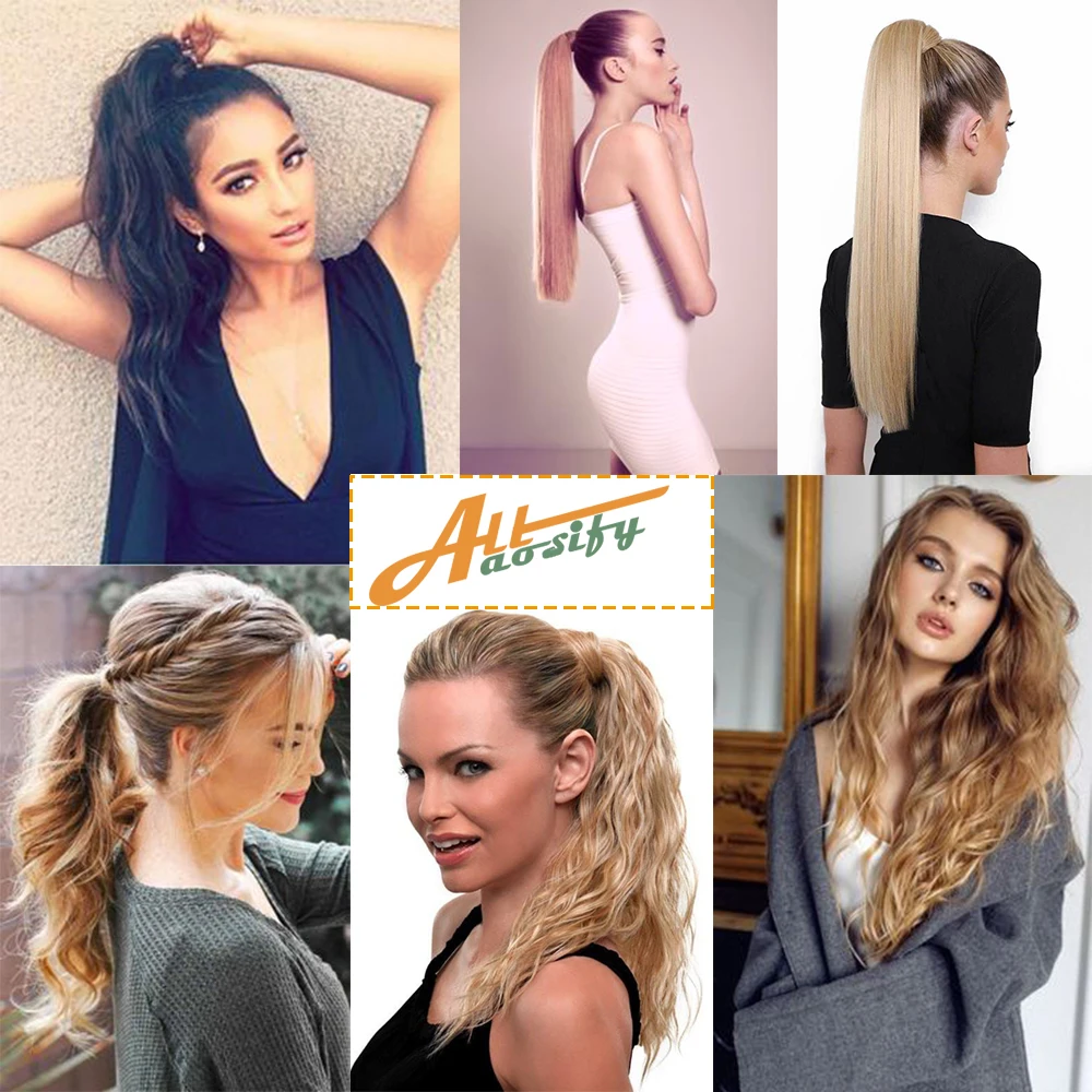 Термостойкие кудрявые парики Allaosify из синтетического волокна, 24 дюйма, с конским хвостом, накладные волосы на клипсах, парик с конским хвостом