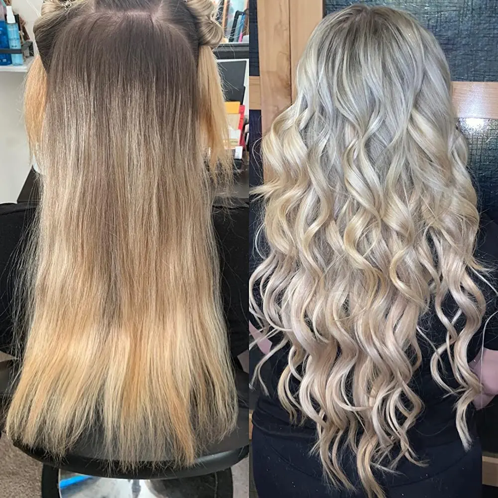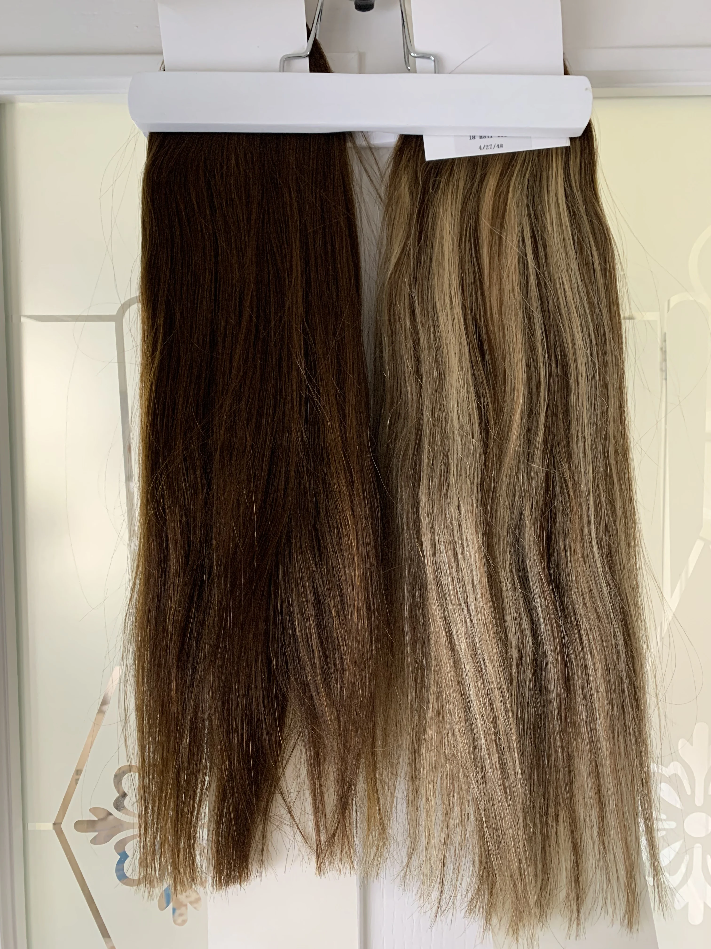 У меня был стиль, соответствующий цвету наращивания волос, который легко и просто выглядел потрясающе! Вы никогда не знаете, что это не мои настоящие волосы. Я купил только одну коробку (на фото), но другая на пути, потому что я ищу много своего объема. Отличный продукт.