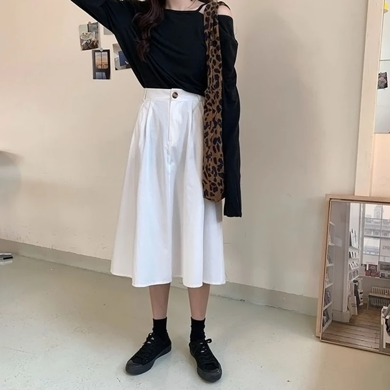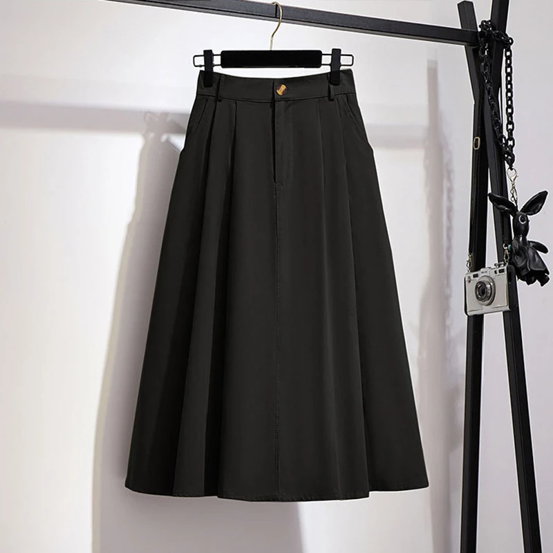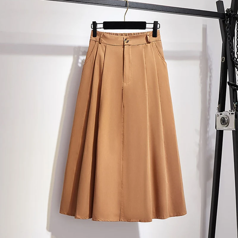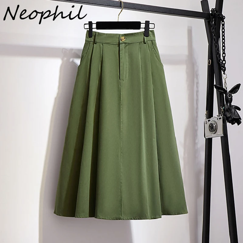 Осень 2022, Женские базовые Юбки-миди Neophil в стиле преппи, однотонные трапециевидные юбки с высокой талией, повседневные юбки с карманами S21301