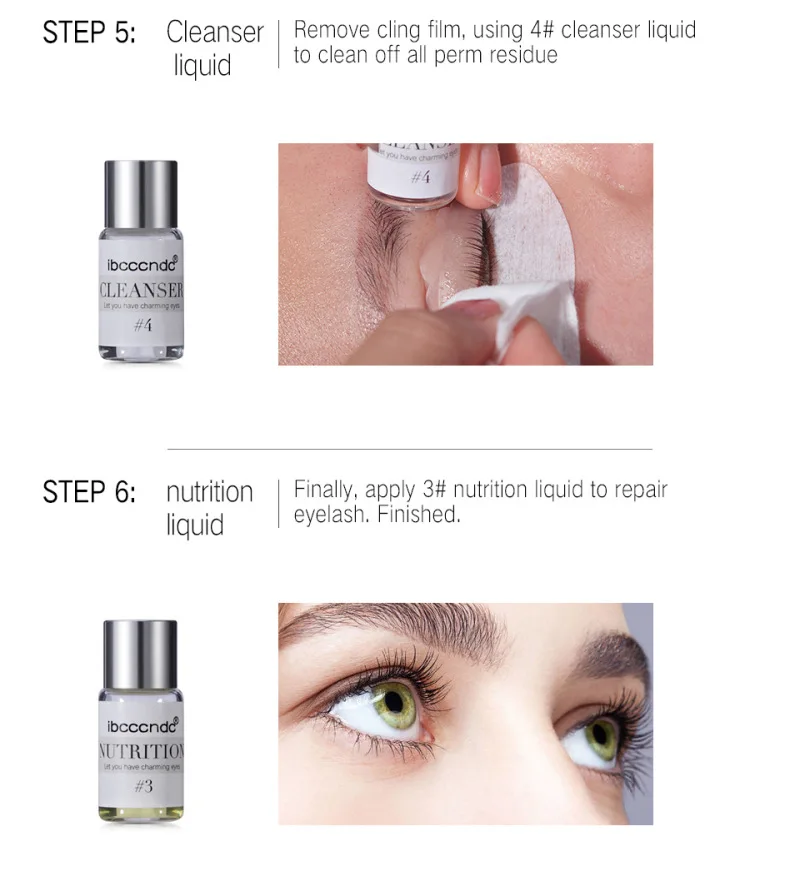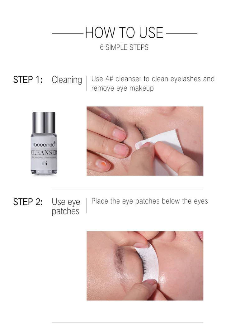 Шаг 1: используйте очищающее средство No.4 для удаления жира, пыли и остатков косметики с ваших ресниц.