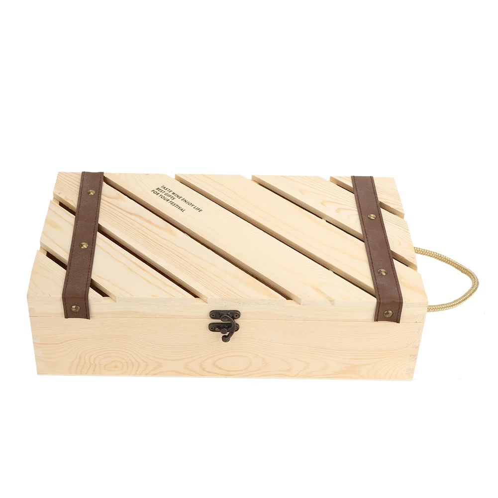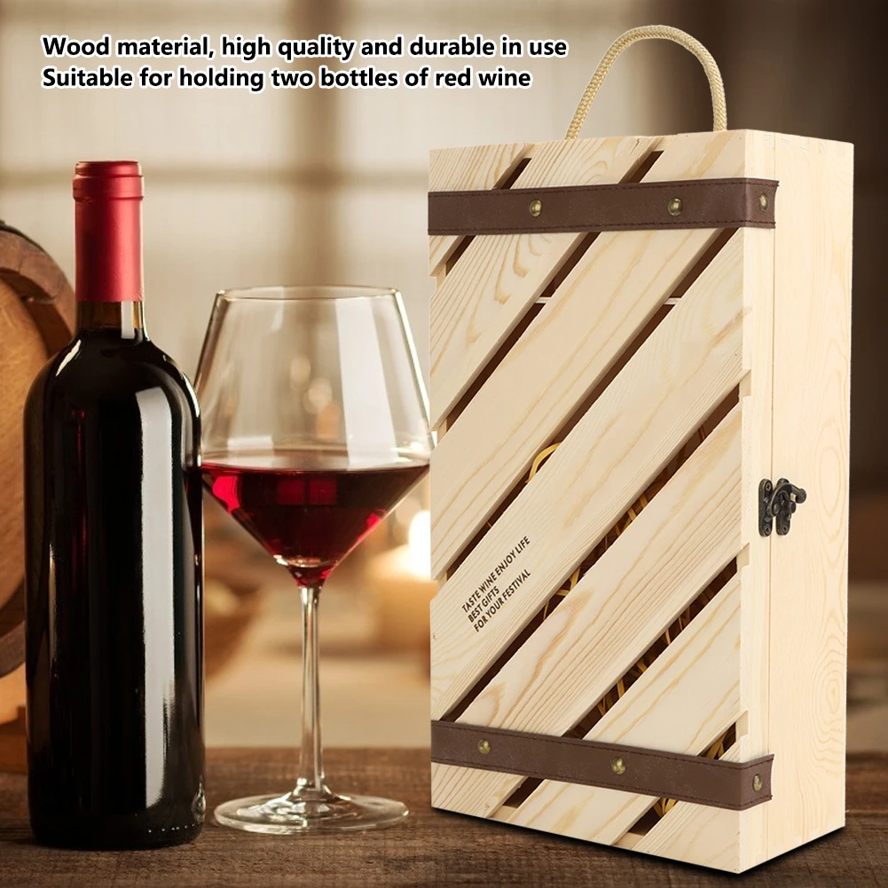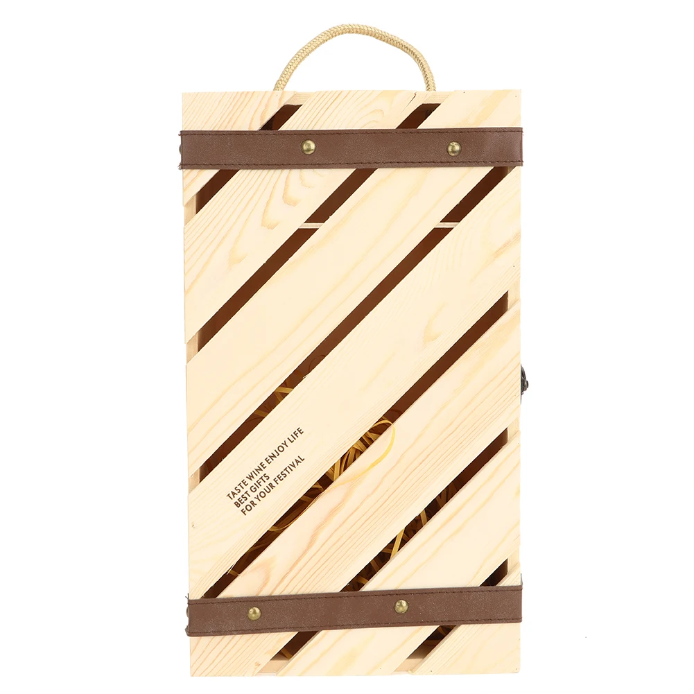 Демонстрационная коробка для хранения красного вина, кожаная сосновая деревянная наклонная барная Высококачественная подарочная коробка, держатель с ручкой и веревкой для 2 бутылок вина