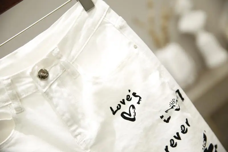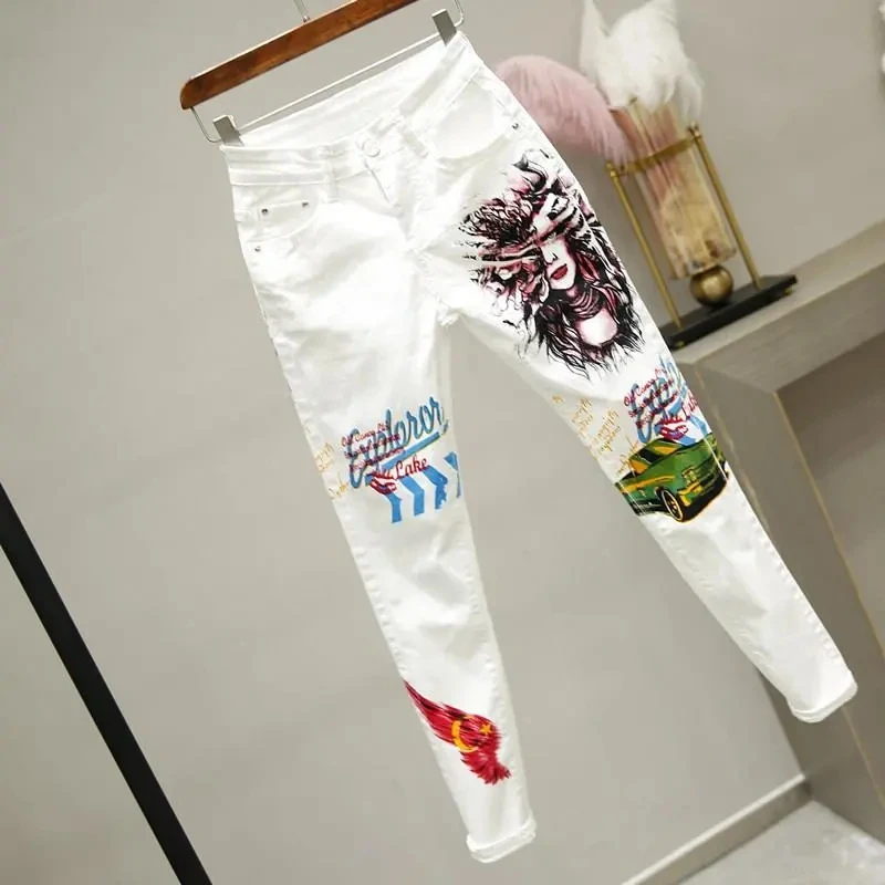 Джинсы-карандаш женские с завышенной талией, повседневные длинные брюки в винтажном стиле, уличная одежда в Корейском стиле, с рисунком, белые, весна 2021