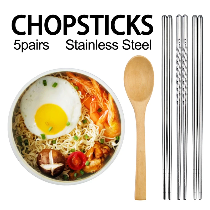 5 парнабор Нержавеющаясталь квадратных палочками Китайский стильный здоровый светильник Вес китайские палочки для еды металла Нескользящая конструкция Кухня