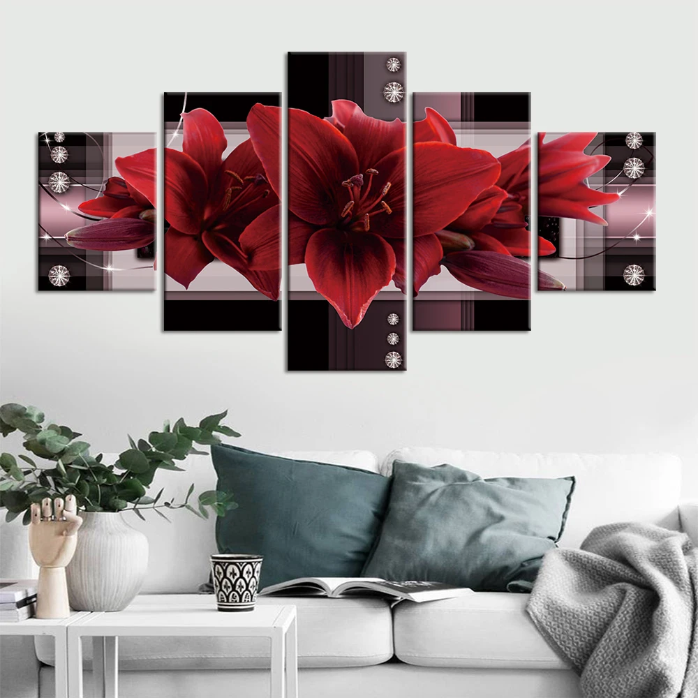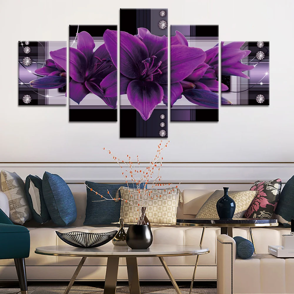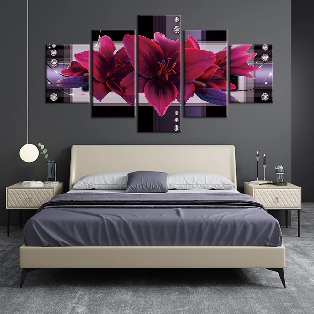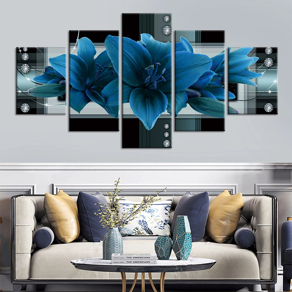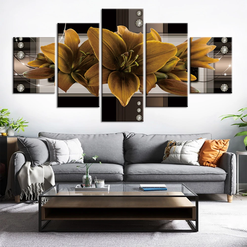 5 шт. абстрактные красочные цветочные плакаты, Настенная картина, цветы лилии, модульное искусство, абстрактные картины для гостиной, спальни