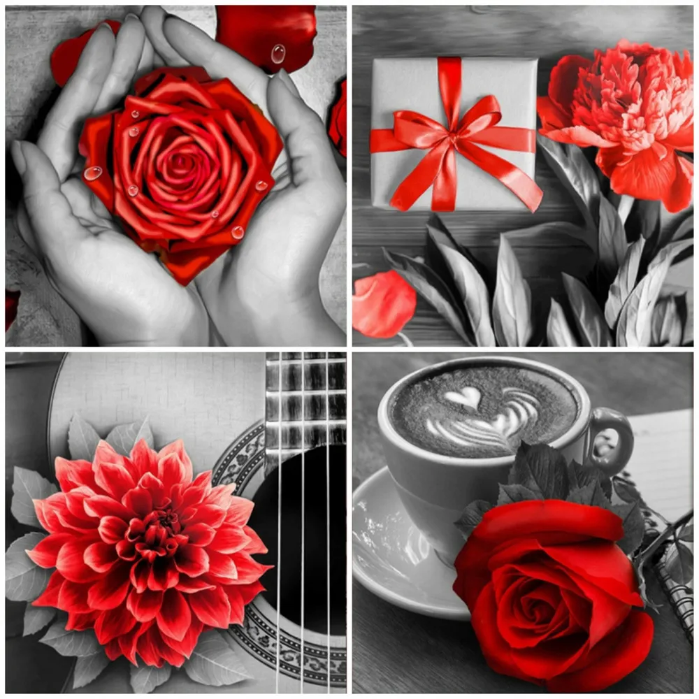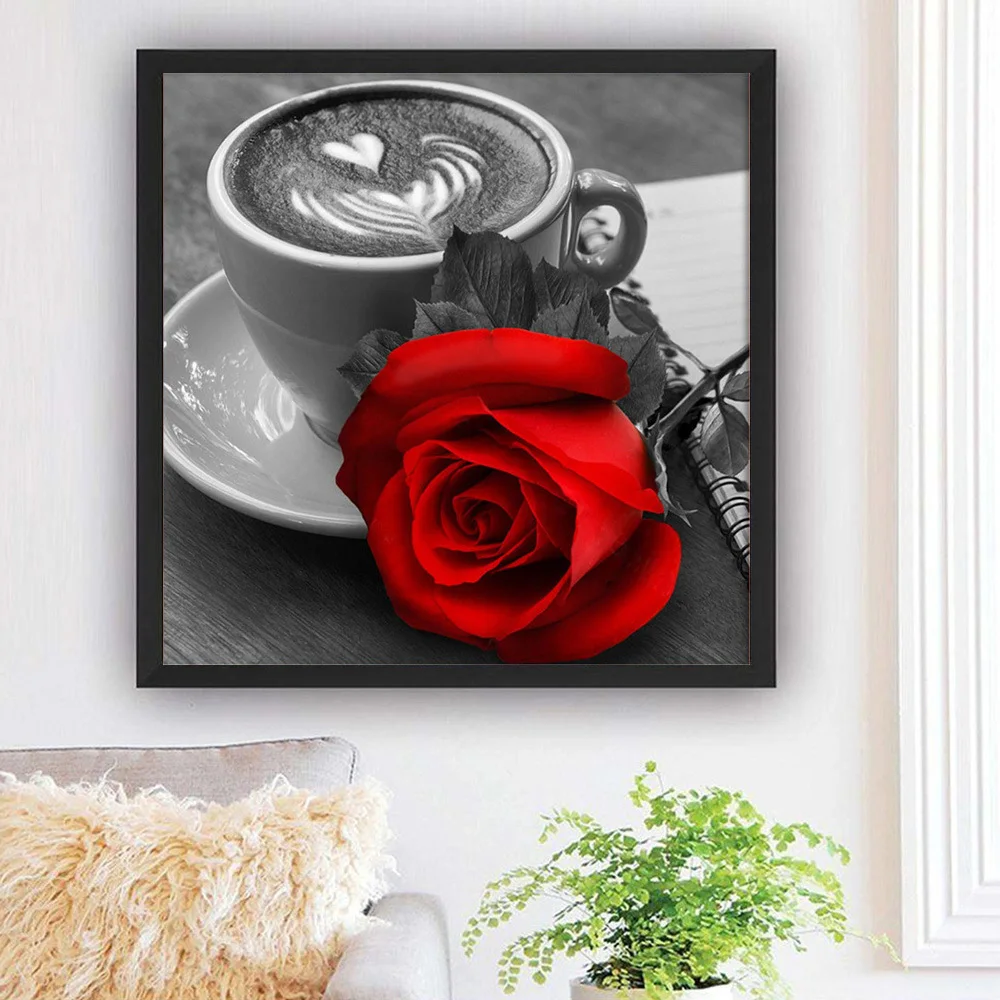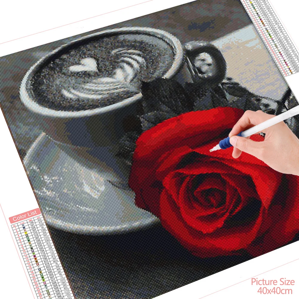 Алмазная живопись HUACAN, вышивка в виде кофе, мозаика в виде Розы, вышивка крестиком черного и красного цветов, настенное украшение, подарок ручной работы