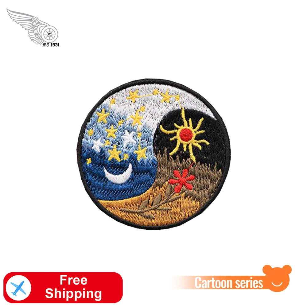 Солнце и луна пейзажи утюгом на нашивки для одежды вышитые рубашки куртки аксессуары сумка оптовая продажа саржевых тканевых наклеек
