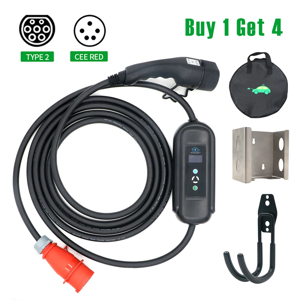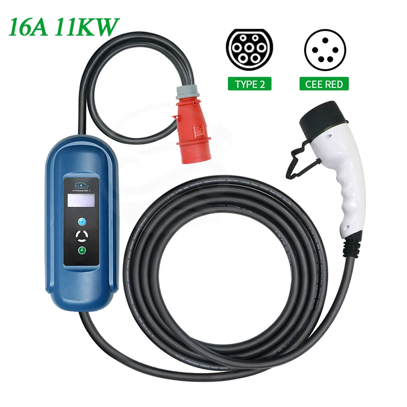 Зарядное устройство для электромобилей, 16 А, 11 кВт, трехфазный Уровень 2, портативный переключатель EVSE, дисплей для зарядки электромобиля, адаптер IEC 62196-2 типа 2