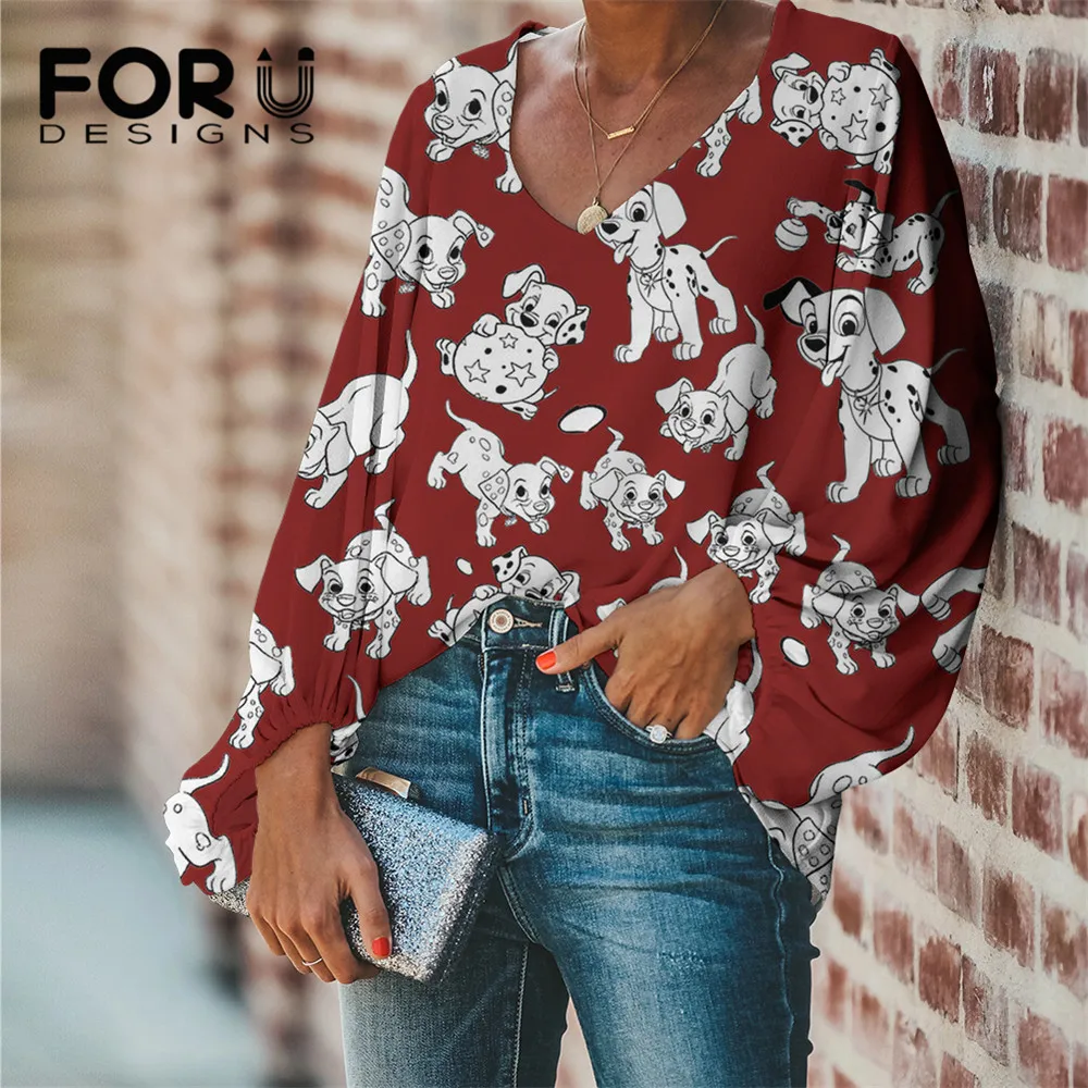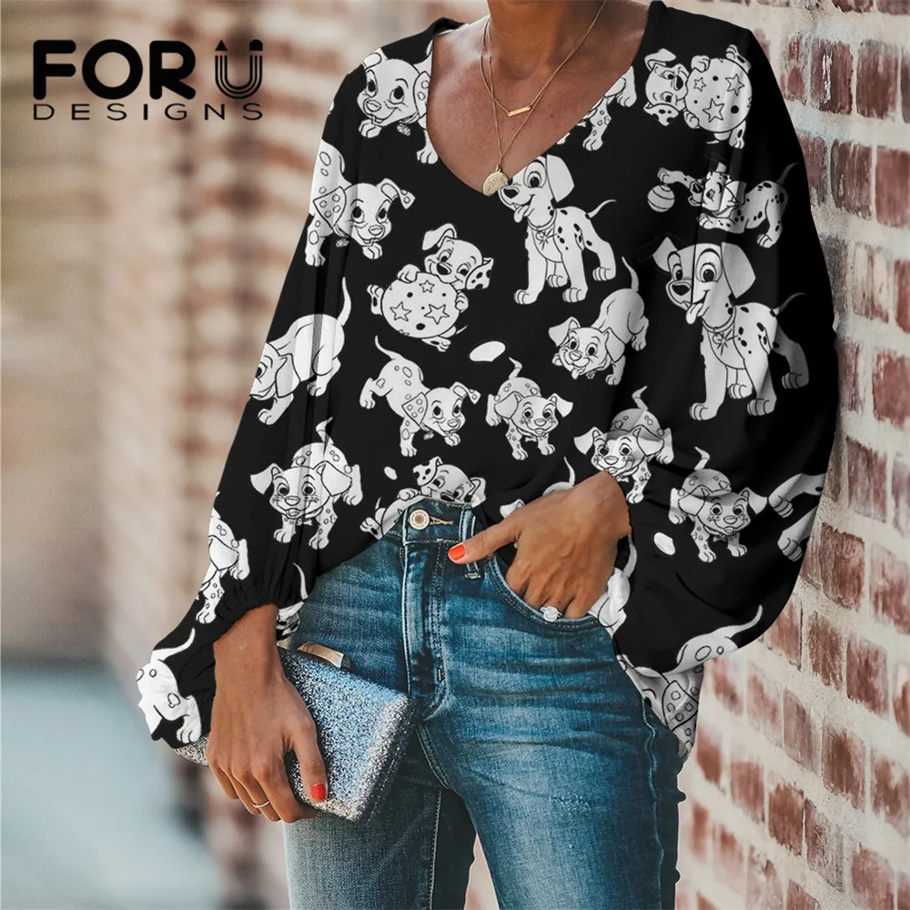 FORUDESIGNS женская элегантная блузка с забавным изображением далматинской собаки, Женская Повседневная Свободная блузка, модная сексуальная женская блузка