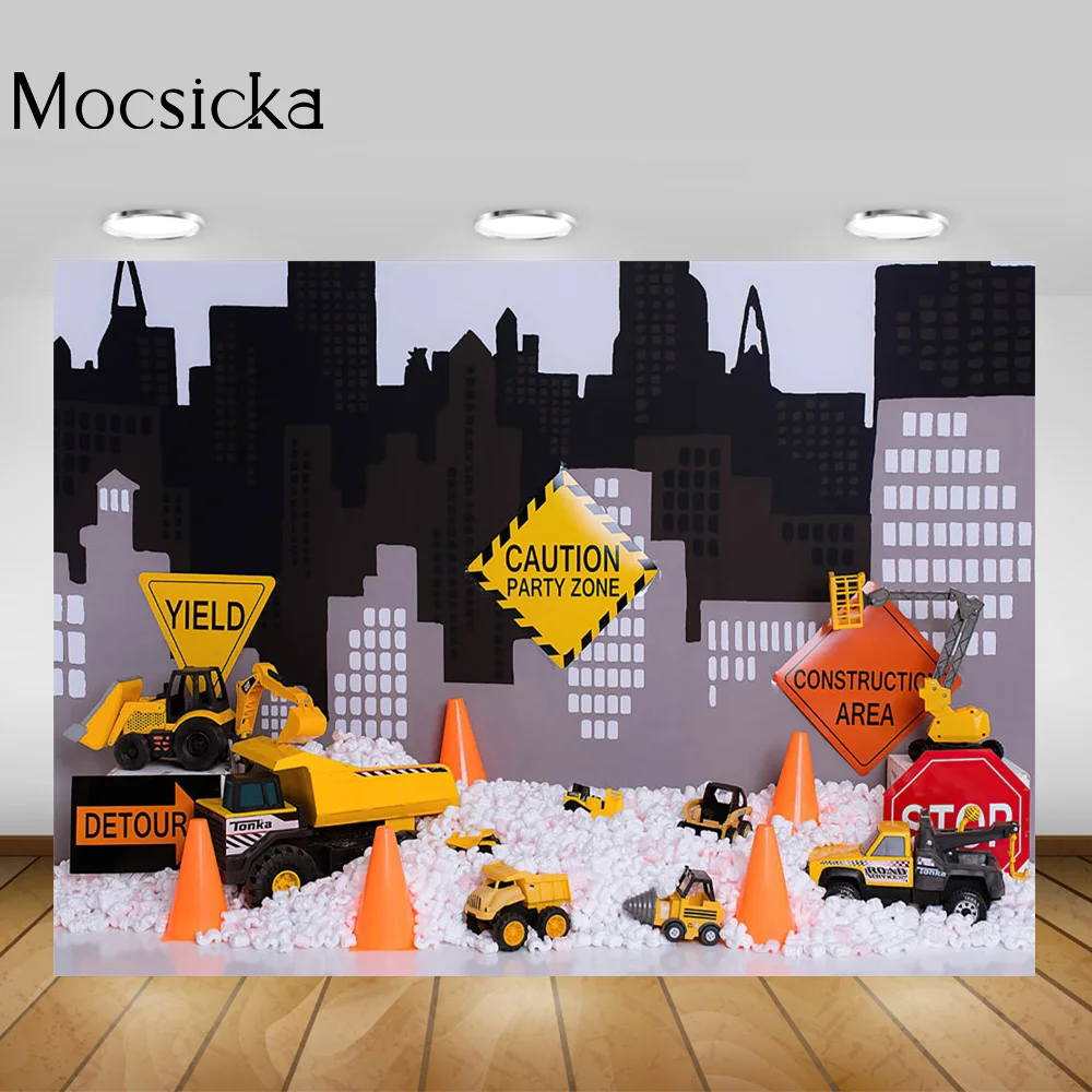 Фон для фотосъемки новорожденных и малышей в стиле дня рождения, разбитого торта, грузовик-экскаватор зоны