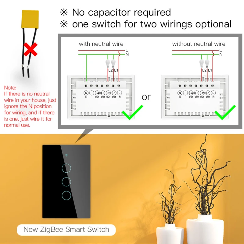 Этот новый разработанный смарт-переключатель с 1/2/3 опциональными группами разработан с протоколом ZigBee для замены традиционных переключателей различными способами управления. Для нормального использования требуется один переключатель для двух проводов (провод N + L/только провод L) и концентратор ZigBee. Теперь одна новая интеллектуальная функция в качестве мультиуправления (только для провода N + L) для других интеллектуальных переключателей встроена в приложение smart Life/Tuya, и все режимы управления работают без помех. Lts дизайн подходит для различных стилей украшения с его лучшей ценностью.