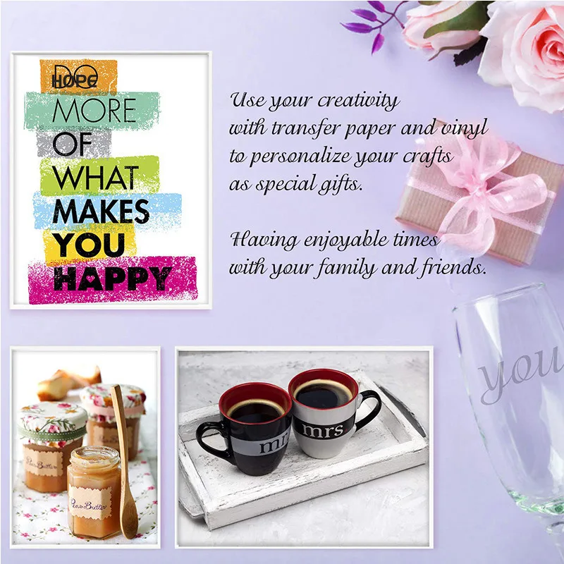 Особенности:** Поверхностный слой-прозрачная бумага/ПВХ, средняя-средняя вязкость, нижний слой-бумажный пилинг. Применение бумажной ленты-это клейкая виниловая машина для переноса поверхности, вы можете использовать все это до тех пор, пока вязкость не упадет. Бумага может войти в Печатный пресс, но она не подходит для прозрачной бумаги. Карта проста в использовании и используется профессионалами, если вы никогда не использовали ее раньше, пожалуйста, выберите чистую карту, которая проста для пользователей, которые никогда не использовали ее раньше.** Не слишком вязкий, вы не можете перенести дизайн, но достаточно вязкий, чтобы легко поднять и перенести ваш проект на поверхность. Для любого проекта, даже меньшего размера, он очень прост в использовании.** Наша виниловая рулонная переводная лента предназначена для использования в помещении/на открытом воздухе. Но это не относится к виниловой искре или HTV. Легко переносить на любую гладкую поверхность, как отметку для наклеек, окон, стен, керамики, стекла и т. Д.