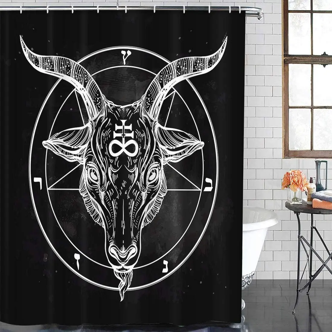 Занавеска для душа, пентаграмма, голова козы, символ, Ретро музыка, лето, для байкеров, черная, водонепроницаемая, из полиэстера, 71x71 дюйм
