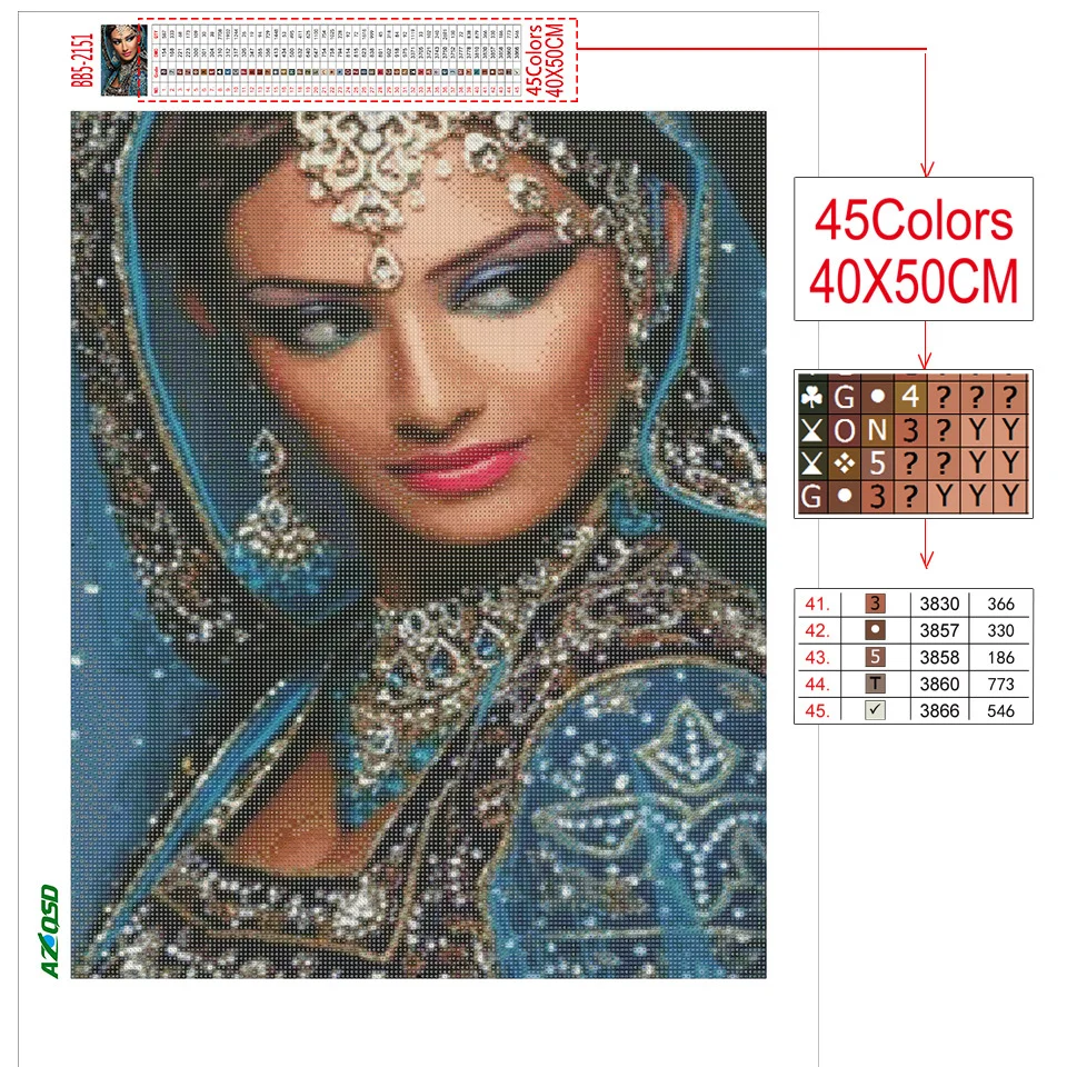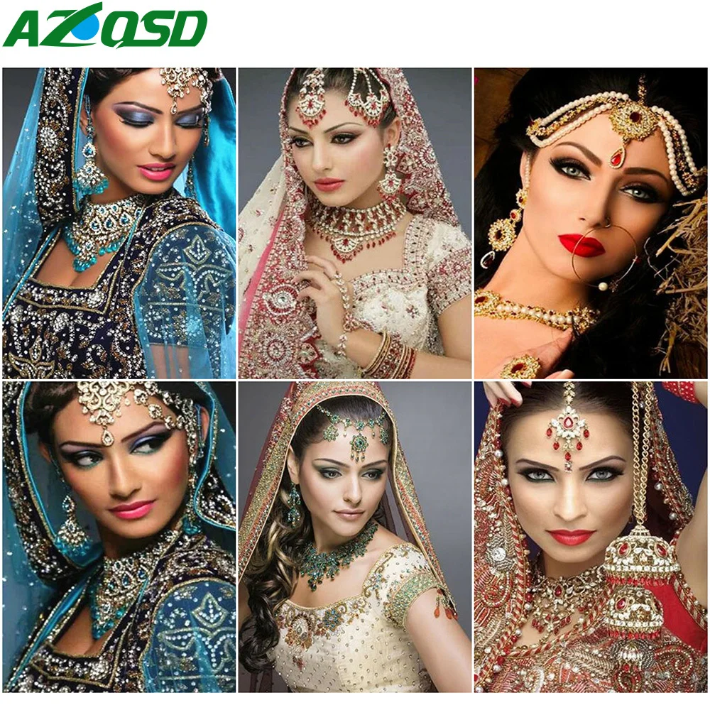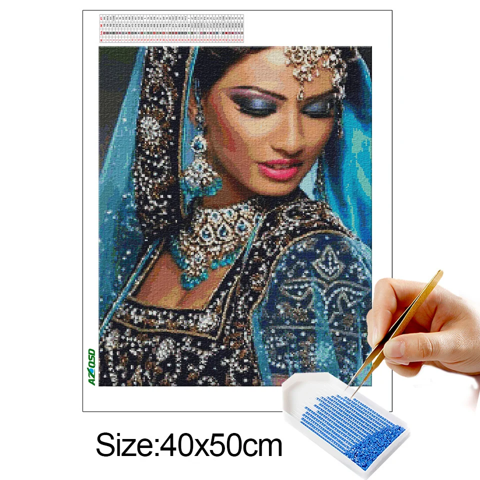 AZQSD 5D алмазная картина индийская Женская Алмазная вышивка ручной работы портрет из мозаики картина стразы украшение для дома