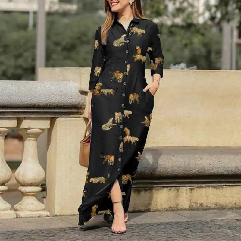 Женское летнее платье VONDA 2022, повседневные платья из джинсовой ткани с отложным воротником и коротким рукавом, богемные платья, женский сарафан