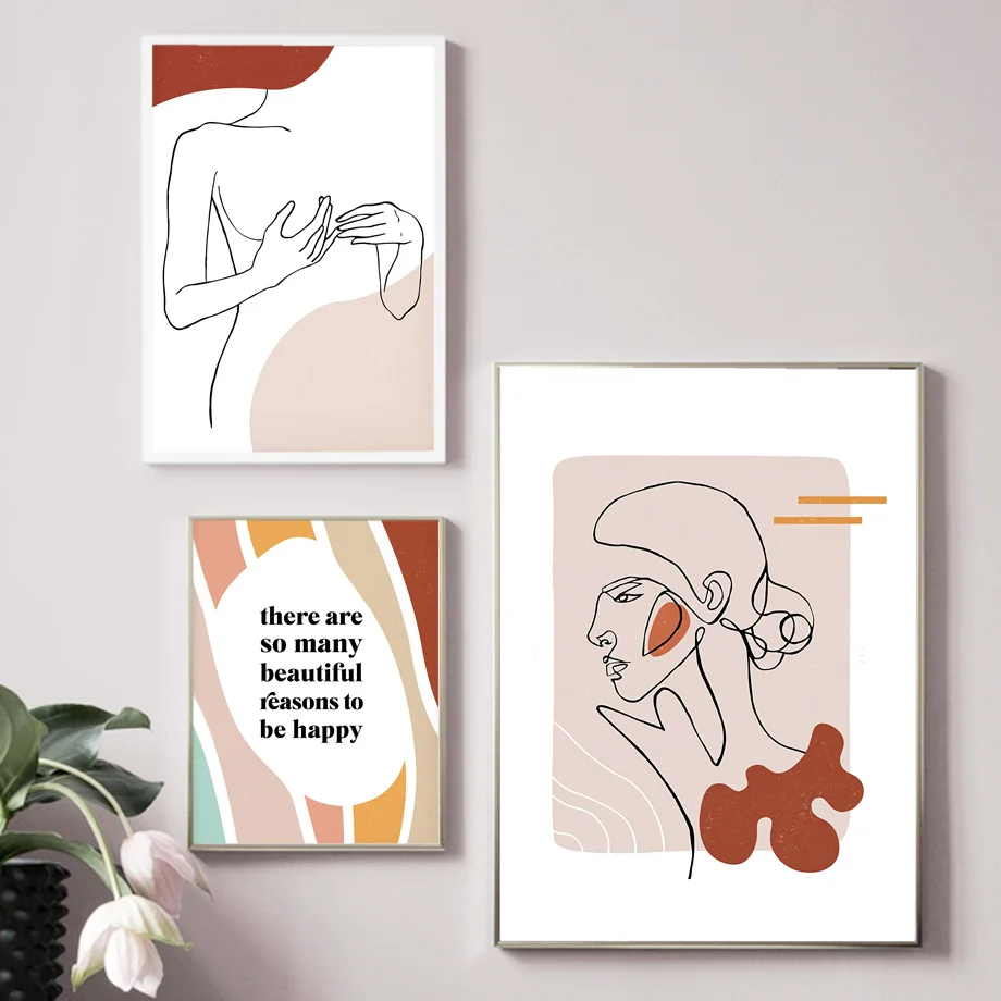 Линия девушка растение Луна Цитата абстрактная Ретро настенная Картина на холсте для гостиной Декор скандинавские плакаты и принты настенные картины