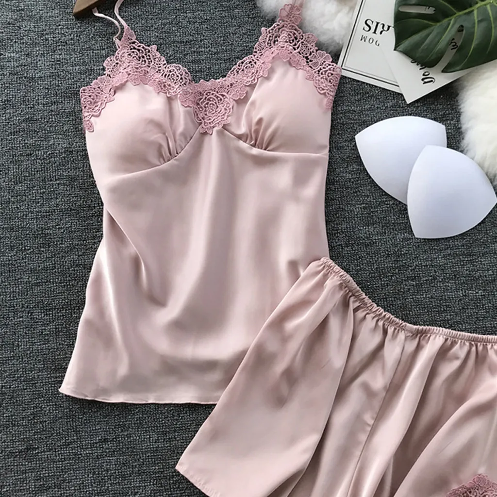 Женское сексуальное атласное нижнее белье на бретельках, кружевная ночная рубашка, комплект нижнего белья