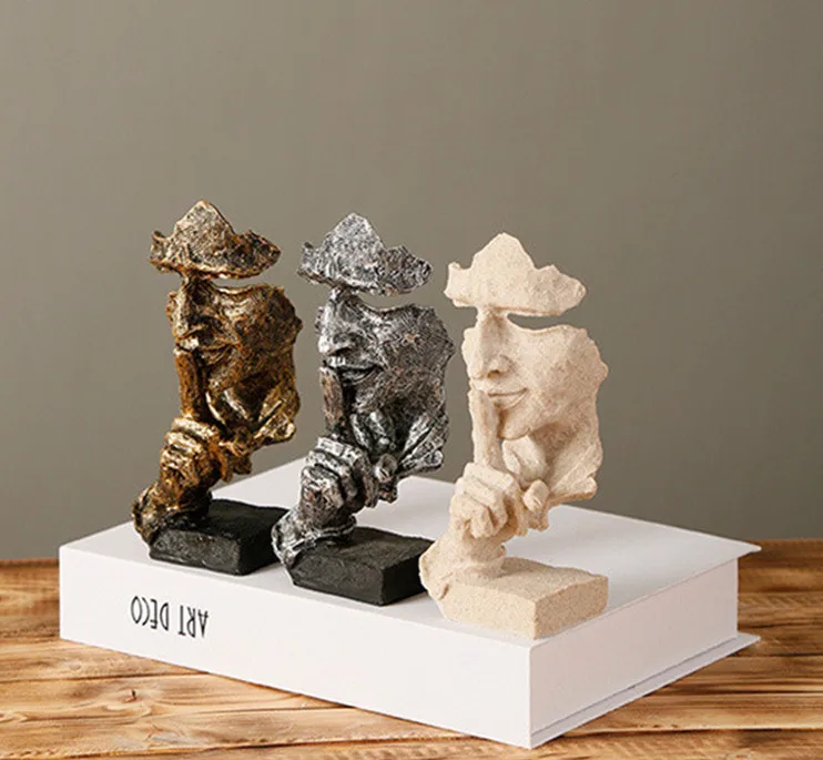 Тишина Золотая настольная статуя из смолы абстрактная личность скульптура современное искусство офисное украшение для гостиной подарок на новоселье