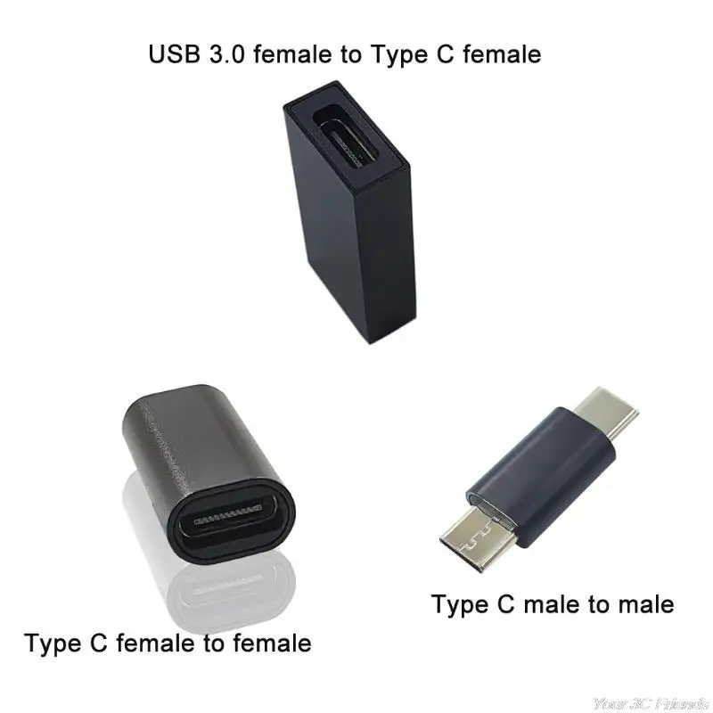 Характеристики:Тип товара: адаптерМатериал: металлЦвет: черныйТип: Тип C «Мама»-«мама», Тип C «Папа-папа», Тип C «Мама»-«Мама USB 3,0» (по желанию)Длина: 2,8 смКоличество: 1 шт. (другие демонстрационные аксессуары на картинке в комплект не входят)
