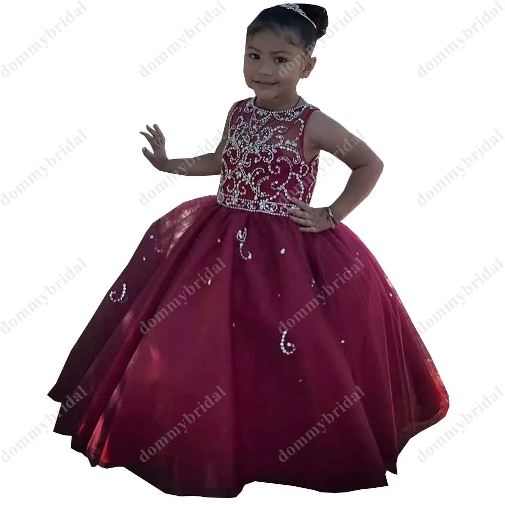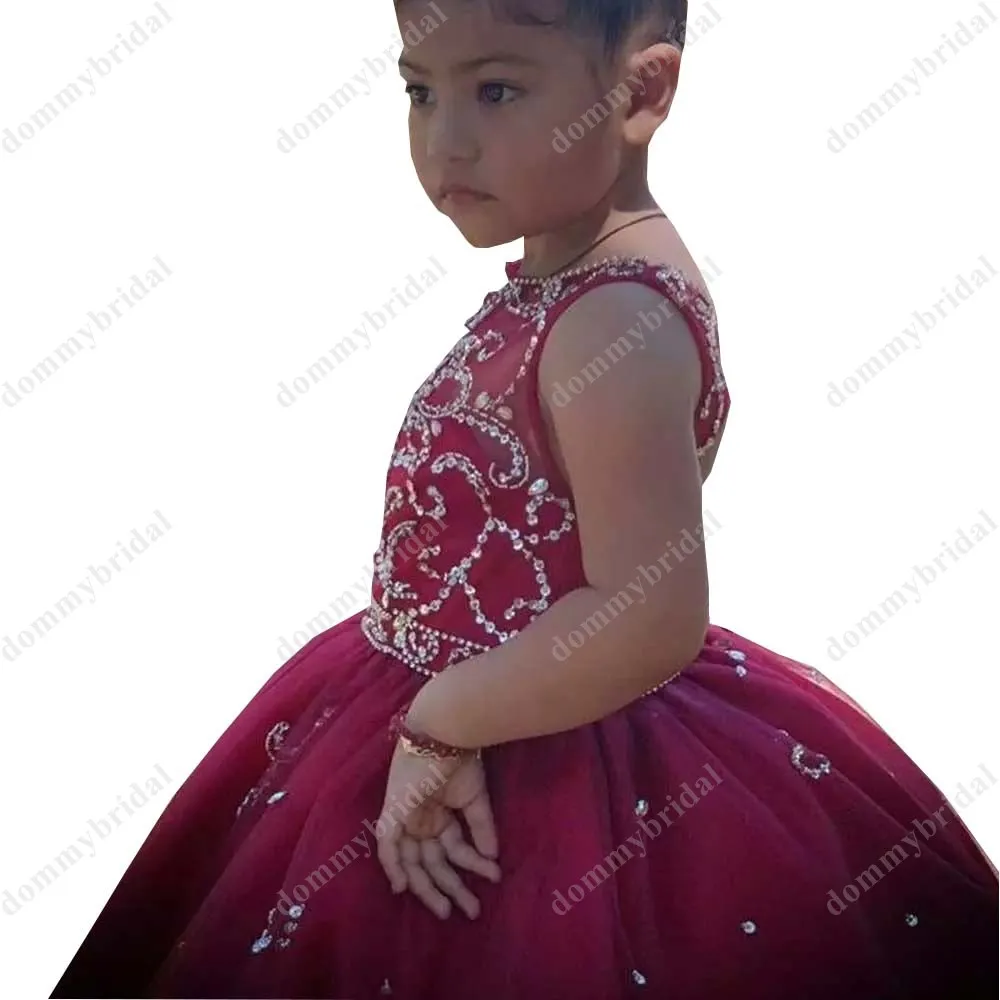 Милые бордовые королевские синие фиолетовые маленькие девочки Детские платья для свадьбы вечеринки торжественных мероприятий с блестками
