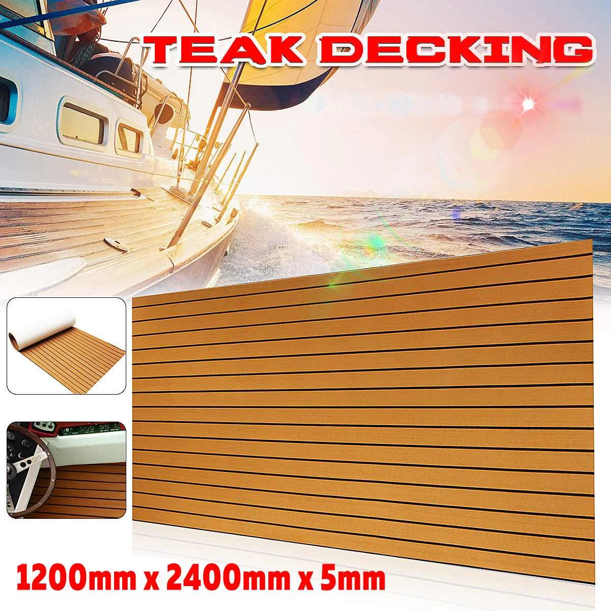 Коврик для палубы лодки из искусственного тика, пены ЭВА, 1200 мм x 2400 мм x 5 мм, коричневый настил, нескользящий настил для яхты, самоклеящийся коврик для автомобиля