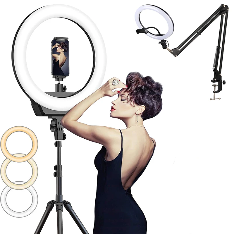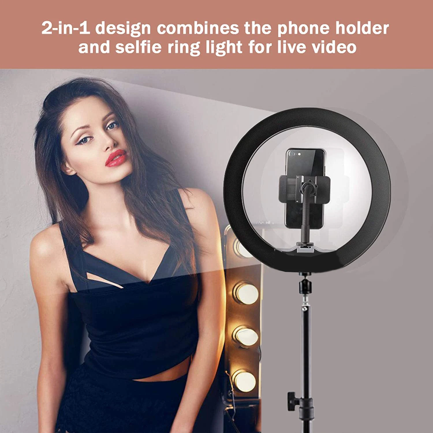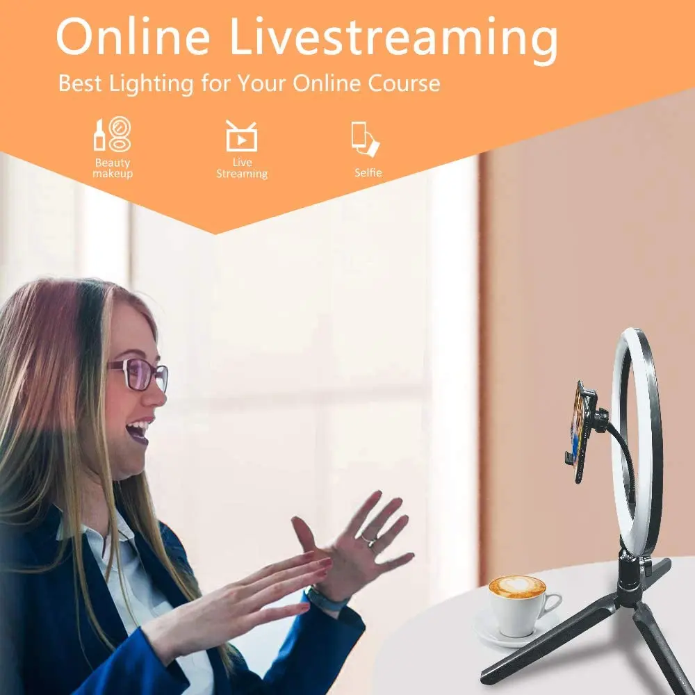 Кольцевой светильник для селфи, светодиодный обод лампы с держателем для мобильного телефона, штатив, кольцевой светильник для прямой трансляции видео