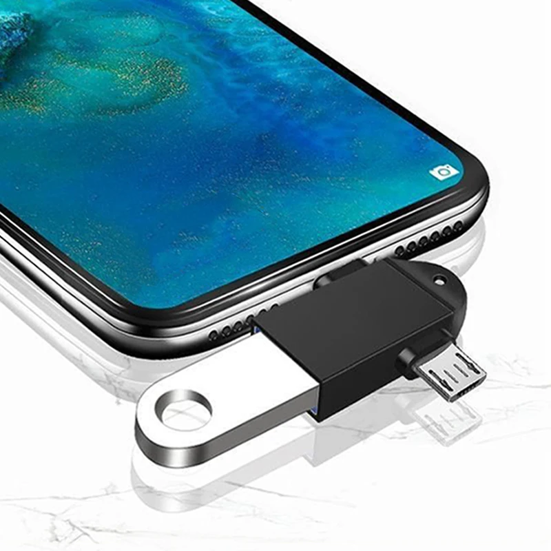 Кабель 2 в 1 Micro usb (штекер)USB (гнездо) для разъема мобильный телефон Type CUSB OTG адаптер из алюминиевого сплава на Go конвертер