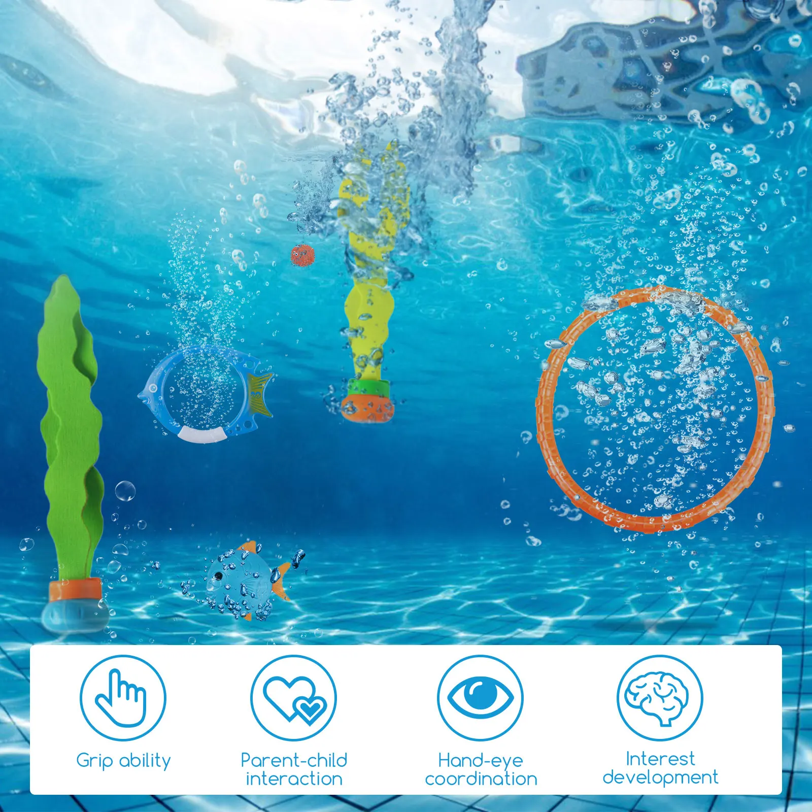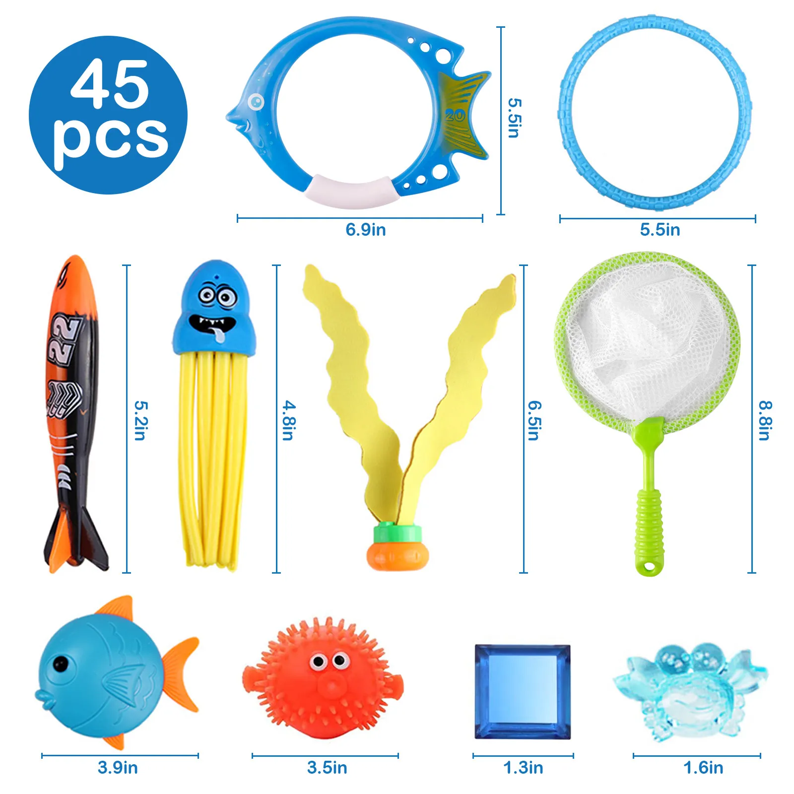 45 шт., игрушки для подводного погружения в бассейн, рыбки, морские водоросли, кольца для дайвинга, торпеды, морская урчина, чистые игрушки для детей, обучение дайвингуПодробности:Посылка содержит:6 штук рыбные игрушки, 6 шт морские водоросли, 2 шт кольца для дайвинга, 2 шт рыбий формы кольца для дайвинга, 14 x алмазные игрушки, 6 шт игрушки осьминоги, 4 шт торпеды, 3 шт морской урчин, 1 рыболовная сеть и 1 сумка на шнурке, 45 штук в общей сложности.Безопасный материал:Все игрушки изготовлены из высококачественных материалов, очень прочные и небьющиеся. Гладкий дизайн края, чтобы ваши дети не повредились при захвате и красочном дизайне, чтобы помочь вашим детям легко найти цели!Забавные игрушки для дайвинга:Просто Бросьте Эти погружные игрушки в бассейн, который, как правило, погружается в бассейн, плавает на поверхности или стоит на дне, подождите, пока дети погрузятся в воду, И отправляйтесь за ними!Добавить больше удовольствия:Дети могут организовать соревновательную игру, собрать эти игрушки для бассейна и забивать больше очков. Принесите своим детям самое большое удовольствие, а также хороший способ улучшить навыки дайвинга!Портативный и применение:Эти игрушки для дайвинга поставляются с мешочком на шнурке, очень легко носить с собой в ванной, бассейне, пляжном море и океане. Наслаждайтесь семейным отдыхом этим жарким летом!Спецификация:Материал: пластикРазмер:Игрушечная Рыбка: 8x7,5 см/3,15x2,95 дюймовМорские водоросли: 3,3 & nbsp; x 16,5 см/1,30x6,50 дюймовКольцо для дайвинга: 15,5x15,5 см/6,10x6,10 дюймовВ форме рыбы кольцо для дайвинга: 20 см x 14,5 смИгрушка-Осьминог: 12x3 см/4,72x1,18 дюймовТорпеда: 13x3,4 см/5,12x1,34 дюймовМорской еж: 8,5x8,5 см/3,35x3,35 дюймовРекомендуется для возраста 3 и вышеПримечание:1. Рекомендуется носить очки во время игры.2. Этот товар предназначен только для использования в воде.3. Из-за ручного измерения возможны небольшие отклонения.4. Водяной пистолет имеет много цветов, мы отправим его случайным образом.5. Некоторые игрушки маленького размера, дети должны находиться под присмотром взрослых, чтобы играть с ними, чтобы предотвратить несчастные случаи.Посылка:6 игрушек для рыб6 морских водорослей2 кольца для дайвинга2 кольца для дайвинга в форме рыбы14 алмазных игрушек6 x игрушки осьминоги4 торпеды3 x морские уршинкиРыболовная сеть-1 шт.1 х сумка на шнурке