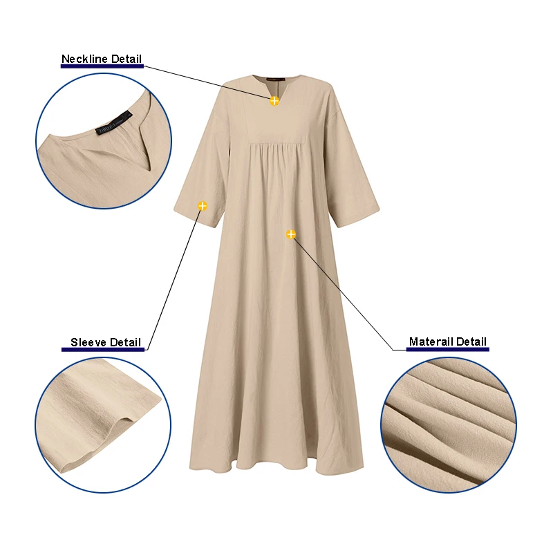 Женское мусульманское платье ZANZEA винтажное однотонное Абая индей...