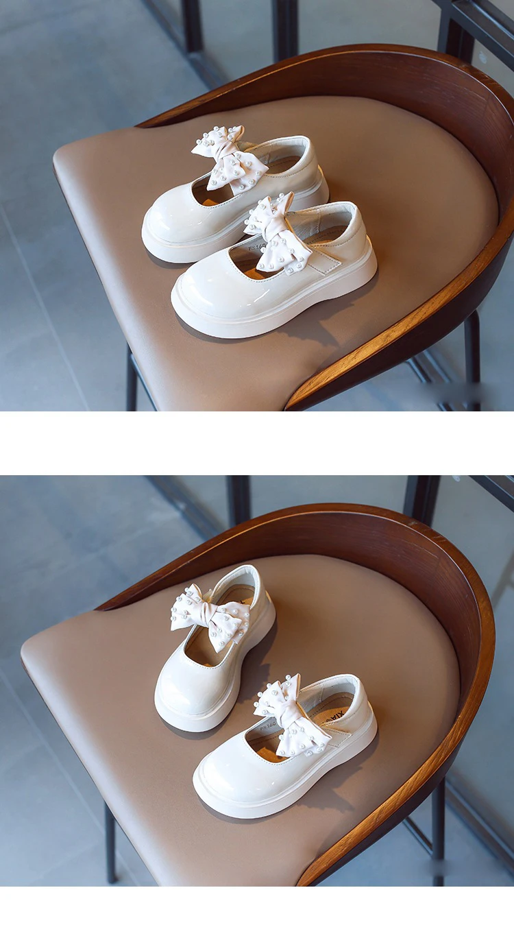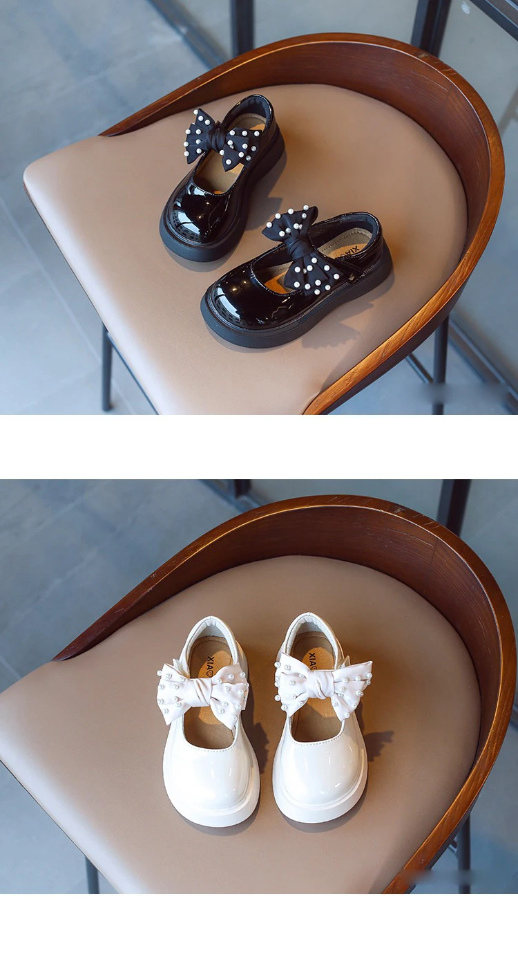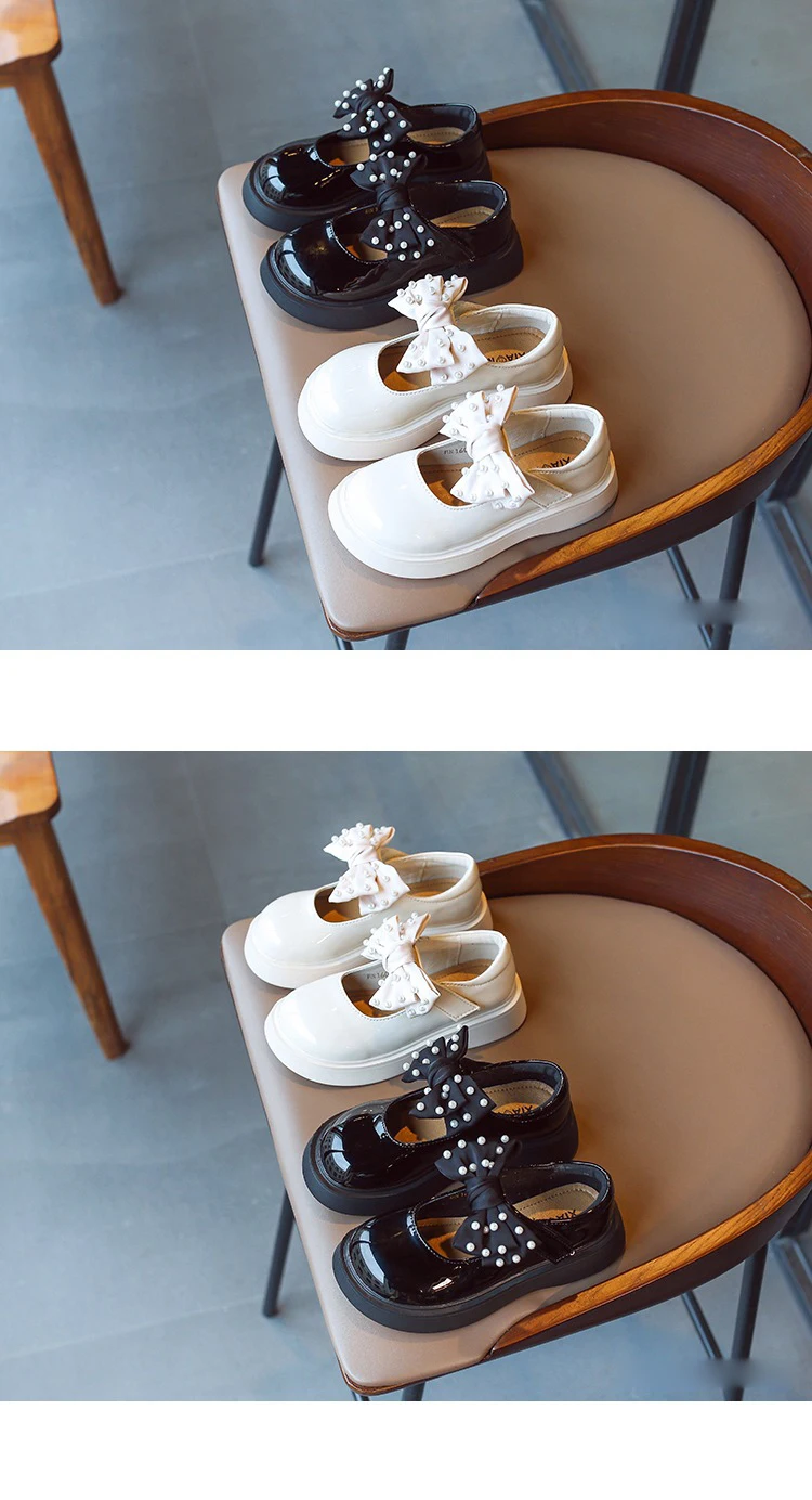 Новинка 2021, весенняя обувь для маленьких девочек, детская обувь принцессы на плоской подошве с бантом, обувь с жемчугом для малышей, детская брендовая черная обувь, модельные туфли Мэри Джейн