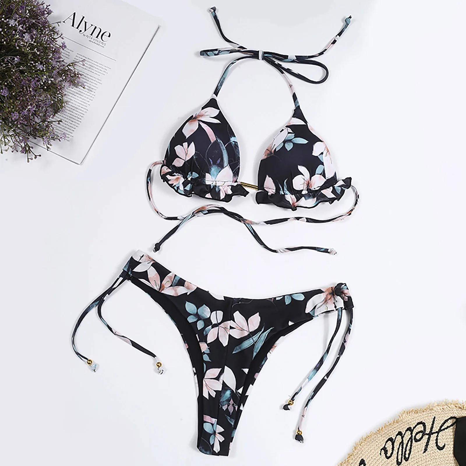 Женское бикини с цветочным принтом, сексуальное бикини с открытой спиной и лямками пуш-ап, Женский раздельный купальник 2022, женский купальный костюм для женщин